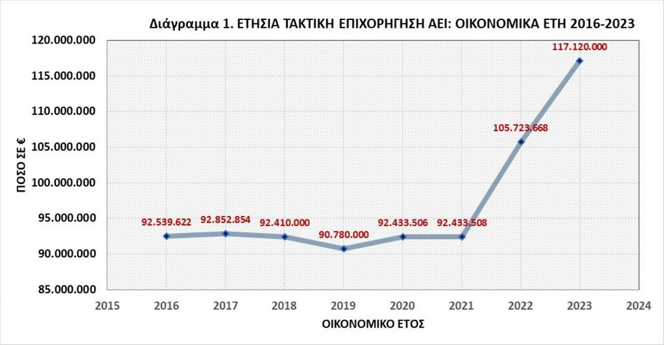 Αύξηση κατά 29% από το 2019, από 90,78 σε 117,12 εκ. ευρώ, σημειώνει η τακτική επιχορήγηση των ΑΕΙ.www.iefimerida.gr