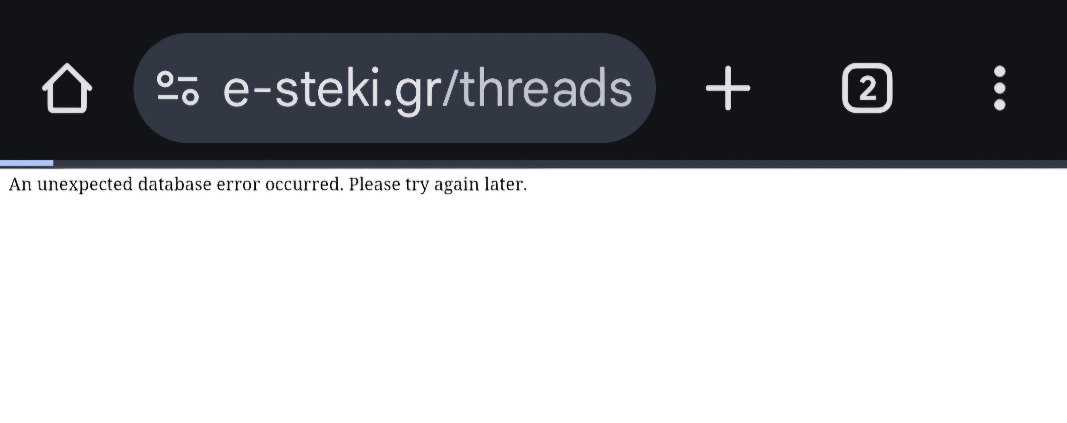 Τώρα οπότε προσπαθούσα να μπω σε κάποιο θρεντ μου έβγαζε αυτό. Γενικά υπάρχει κάποιο πρόβλημα με το σέρβερ στο φόρουμ ή μόνο σε μένα μου βγάζει;