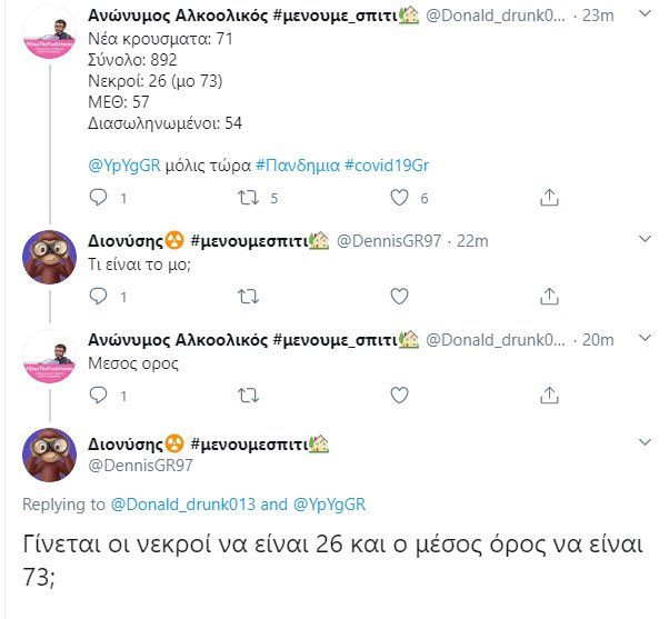 Ειδα να πηγαινει ο Τσιοδρας και ο Χαρδαλιας στους καταυλισμους να τους αντιμετωπισουν στα ισια και να τους πουν αυτα που έχουν. Τους έβαλαν σε καραντινα μεσα εκει. Δεν μπορει να γινει κάτι αλλο. Εσυ ειδες να συλλαμβανεται κανεις απο αυτους που δεν ειναι γυφτοι και εχουν καταλαβει παραλιες; δηθεν για αθληση; πιστεψε με εκανα πολυ περισσοτερη και σκληροτερη γυμναστικη απο ολους αυτους ολο το χειμωνα και τωρα απλα καθομαι στα αυγα μου και κανω γυμναστικούλα σπιτι μου.