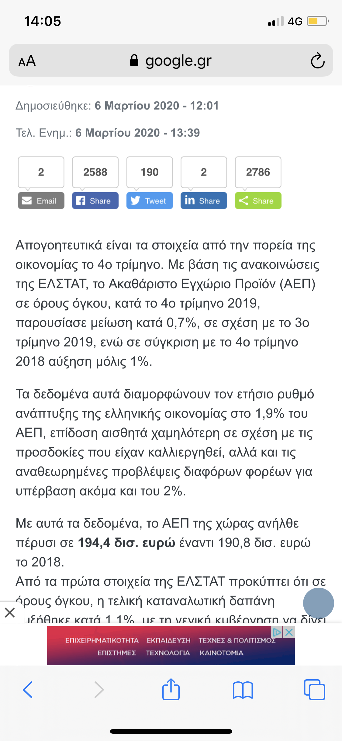 το λέει και μόνο τουΜιλάμε για το 2020 τόση ώρα.Καμια ύφεση δεν θα είχαμε φέτος.Επισης ακόμα και το Q4 2019 είχαμε ανάπτυξη 1% σε σχέση με το Q4 2018
