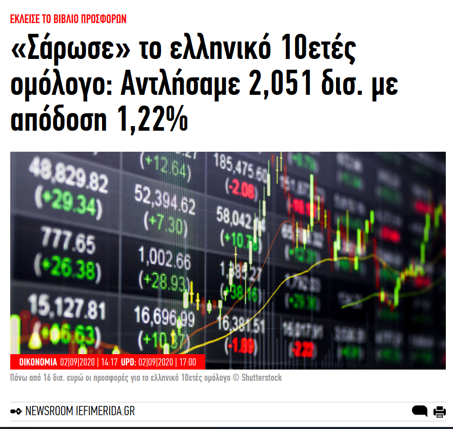 Πρώτη φορά βλέπω υπερχρεωμενος να χαίρεται που δανείζεται με τοκογλυφικο επιτόκιο αλλά όχι τόσο μεγάλο όπως πριν. Πραγματικά αυτή η χώρα είναι προορισμένο να καταστραφείAυτο πως του ξέφυγε του documentou;