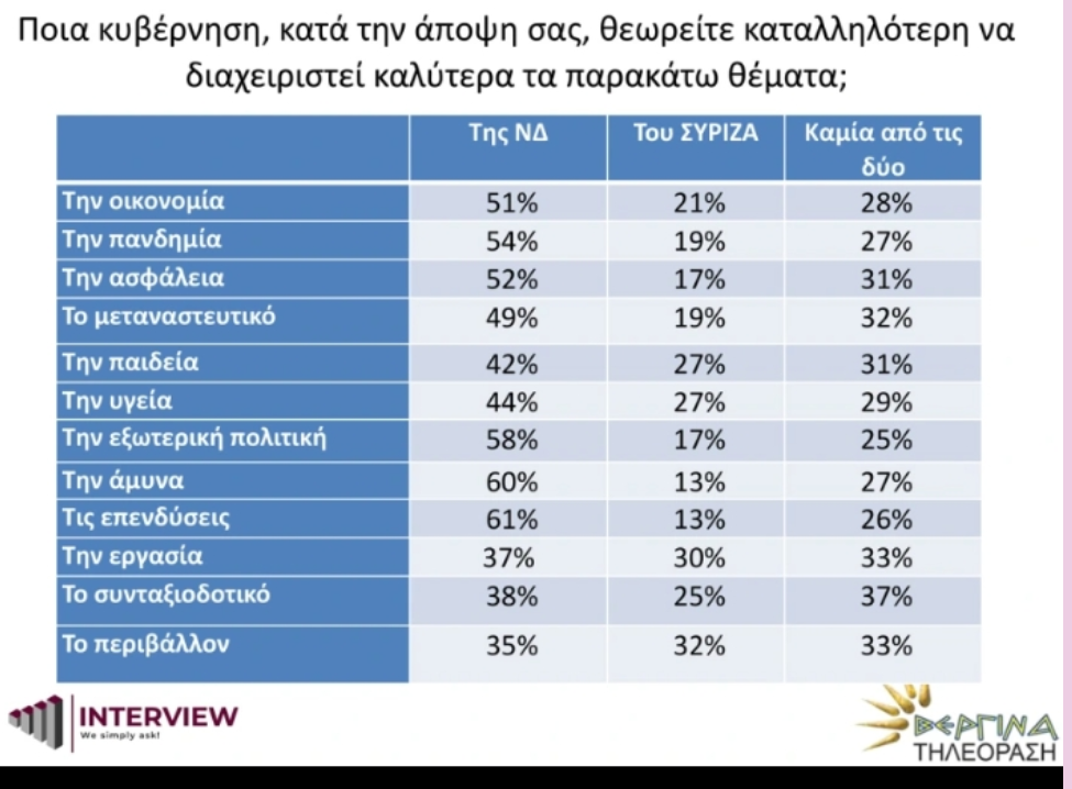 Πάντως τα νουμερα εμπιστοσύνης στην κυβέρνηση για την πανδημία και την ασφάλεια δεν δείχνουν κάποια αλλαγή τάσης σύμφωνα με πρόσφατο γκάλοπ.