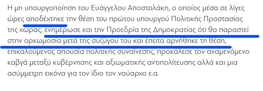Προκαλείς άφθονο γέλιο....Ο Αποστολάκης αρνήθηκε αφού αρχικά δέχθηκε την προταση του Μητσοτακη γιατί... τον αποκάλεσε αποστάτη ο Τσίπρας. Ο σταλινισμός ζει.