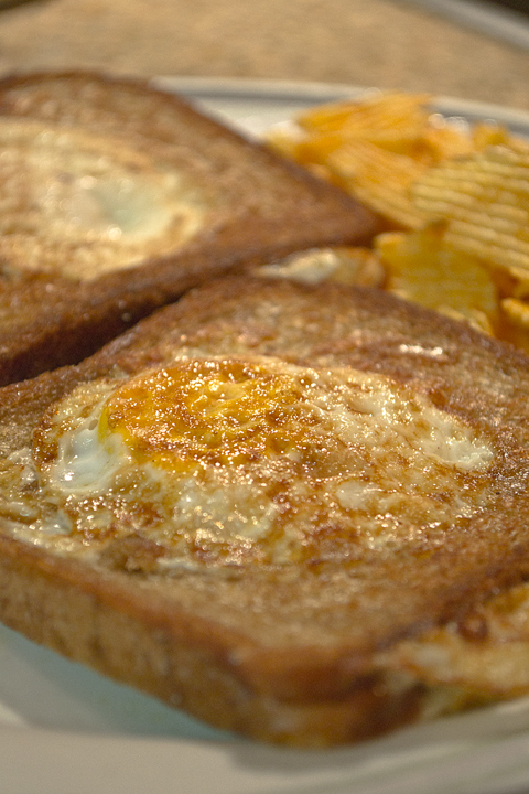 Η διαφορά με "τ' αυγά στο καλάθι" είναι πως ο κρόκος μένει μελάτος και μπορείς να βουτήξεις το στρογγυλό ψωμάκι που αφαιρείς.