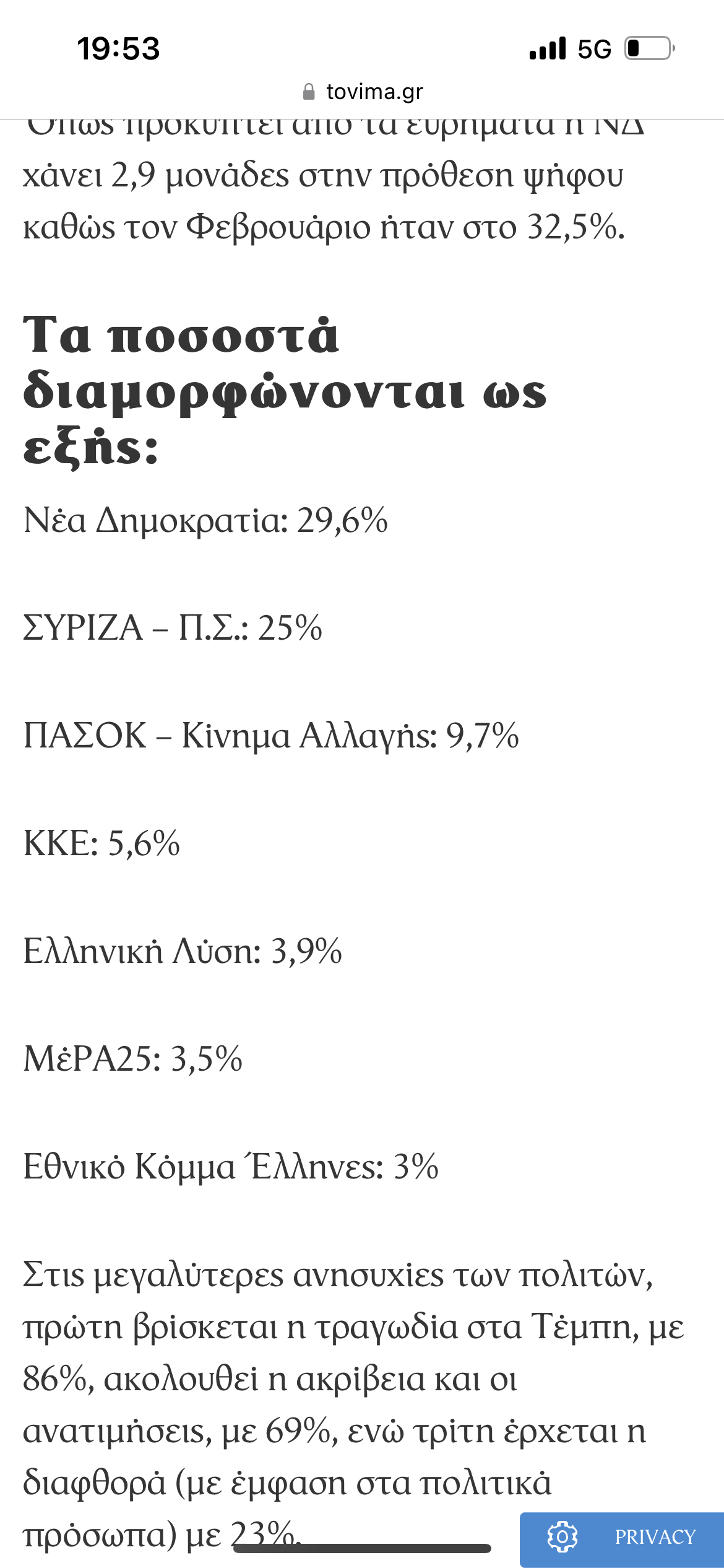 Όπως προκύπτει από τα ευρήματα η ΝΔ χάνει 2,9 μονάδες στην πρόθεση ψήφου – Σε ποιους «πάει» το ποσοστό.www.tovima.gr