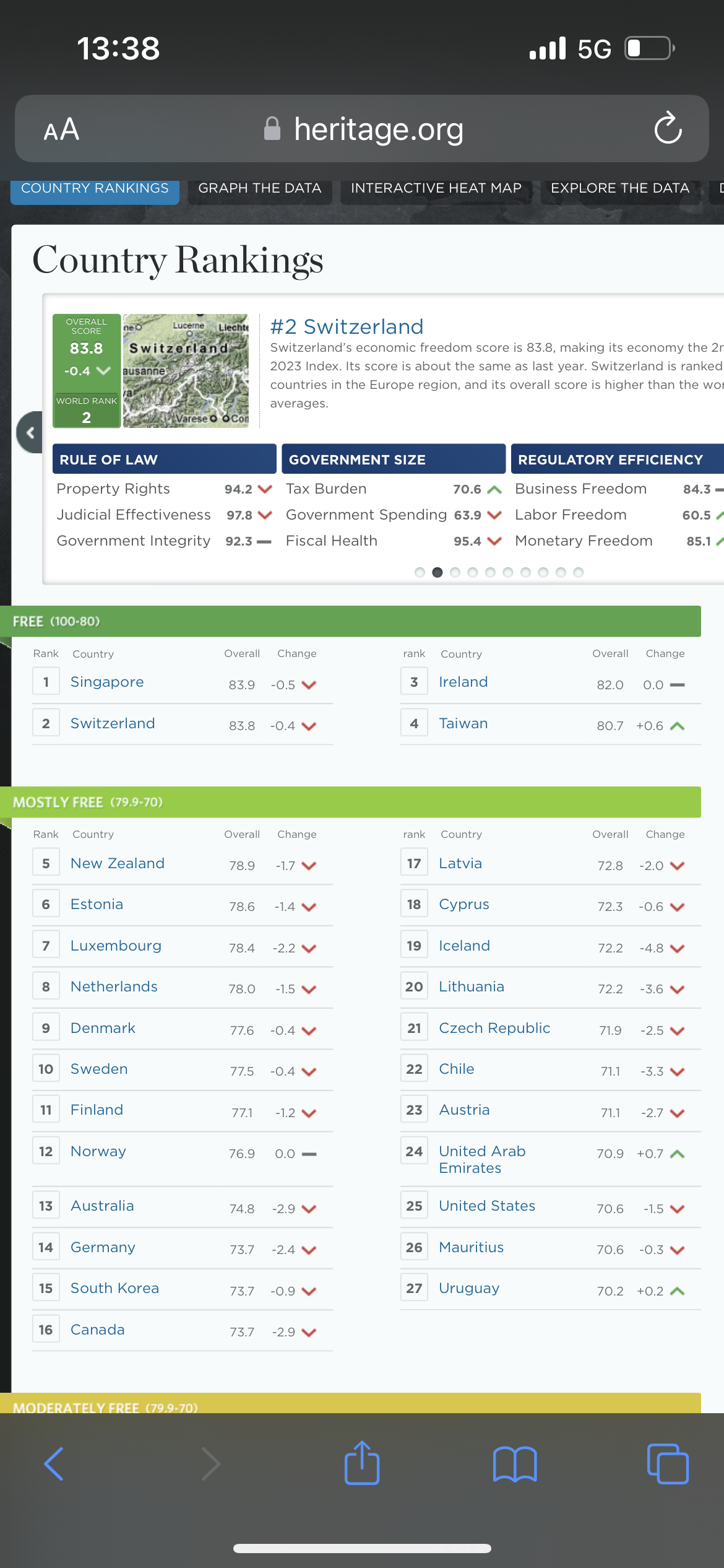 Εδώ βλέπουμε τις 27 πιο οικονομικά φιλελεύθερες χώρες για το 2022. Βλέπουμε ότι Σκανδιναβικές χώρες που θαυμάζουν οι αριστεροί του Forum είναι μέσα στην λίστα αυτή. Μάλλον ούτε τώρα τους αρέσει το Economic liberty.