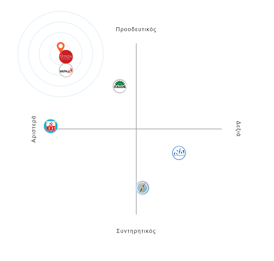 το τεστάκι αυτό είναι ό,τι να 'ναι όμως. ο συριζα έπρεπε να είναι κάπου εκεί που είναι το πασοκ. το πασοκ πιο δεξιά. κ.ο.κ.