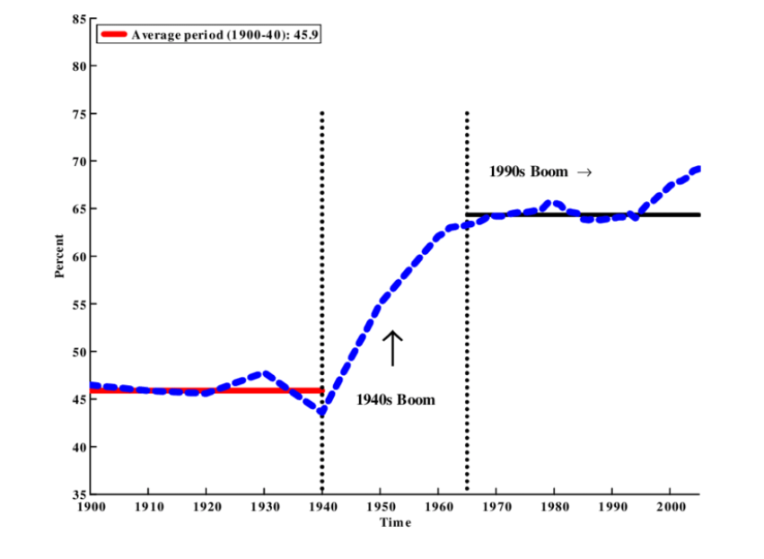 Πηγή :https://www.researchgate.net/figure/The-Evolution-of-the-Homeownership-Rate-1900-2005_fig5_24128650