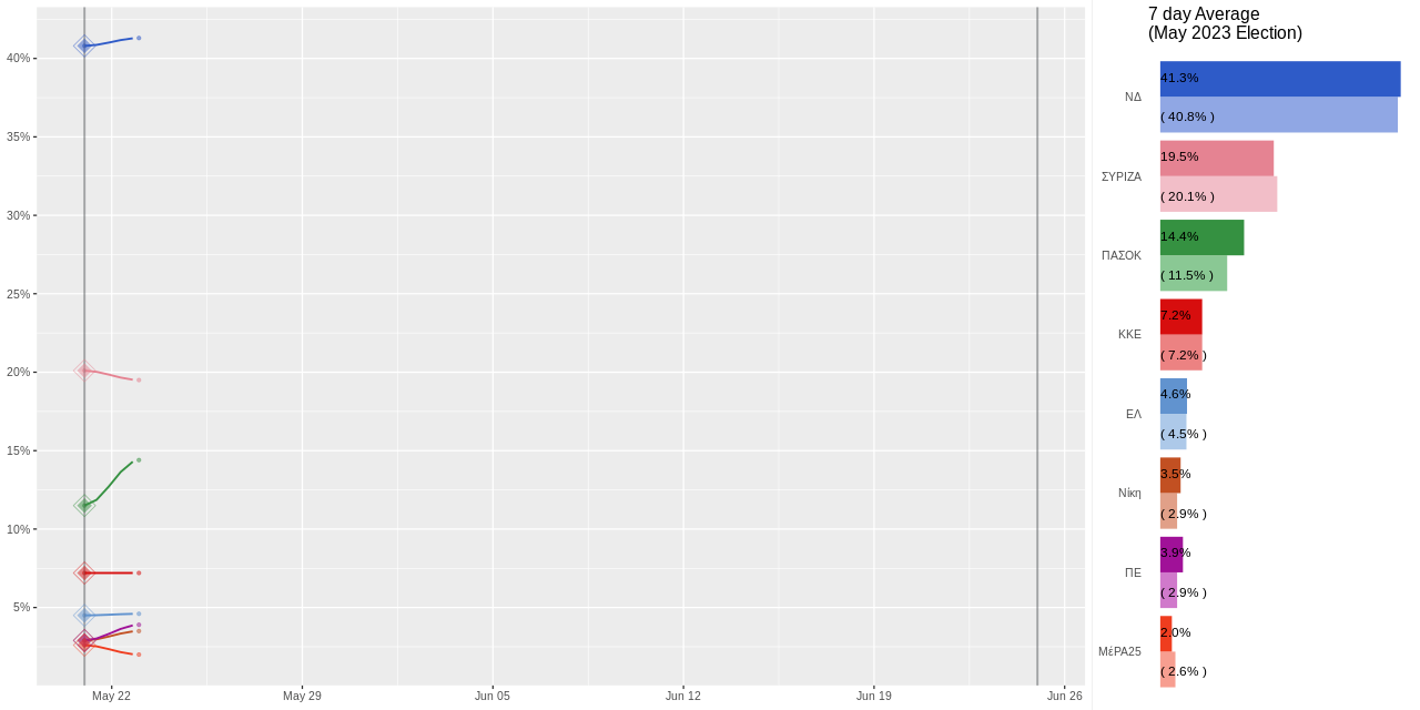 Η ΝΔ με τα μέχρι τώρα δεδομένα, και από ότι φαίνεται στο άμεσο μέλλον επίσης, έχει καταστεί ως ο μοναδικός κυβερνητικός πόλος, κάτι αντίστοιχο με την Τουρκία του Ερντογάν, ελλείψει ισχυρού αντιπάλου, αφού έχει συσπειρώσει ένα ευρύ φάσμα ψηφοφόρων στις τάξεις της, με το μεσαίο χώρο κατά κύριο λόγο να έχει έρθει στις τάξεις της στο μεγαλύτερο ποσοστό, πολλούς δεξιούς ψηφοφόρους, ακόμη και κεντροαριστερούς.Θεωρώ ότι μέχρι τις επόμενες εκλογές του 2027 ή όποτε γίνουν από το κέντρο και αριστερά θα μείνουν 3 κόμματα όπως ήταν πάντα. Το ένα το ΚΚΕ με την παγκόσμια σταθερά του 6-7%, ένα άλλο με κάτι γύρο στο 6% +/- 3% και ένα κεντροαριστερό που θα κοντράρεται με την ΝΔ για την εξουσία.