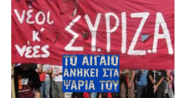 Παλιά έλεγες πως αυτό το έκαναν οι συριζαίοι. Τώρα οι κνίτες. Ποιοί τελικά;Στο πανεπιστήμιο η ΚΝΕ έβαζε αφίσες στις οποίες έλεγε ότι το Αιγαίο ανήκει στα ψάρια του. Enough said.