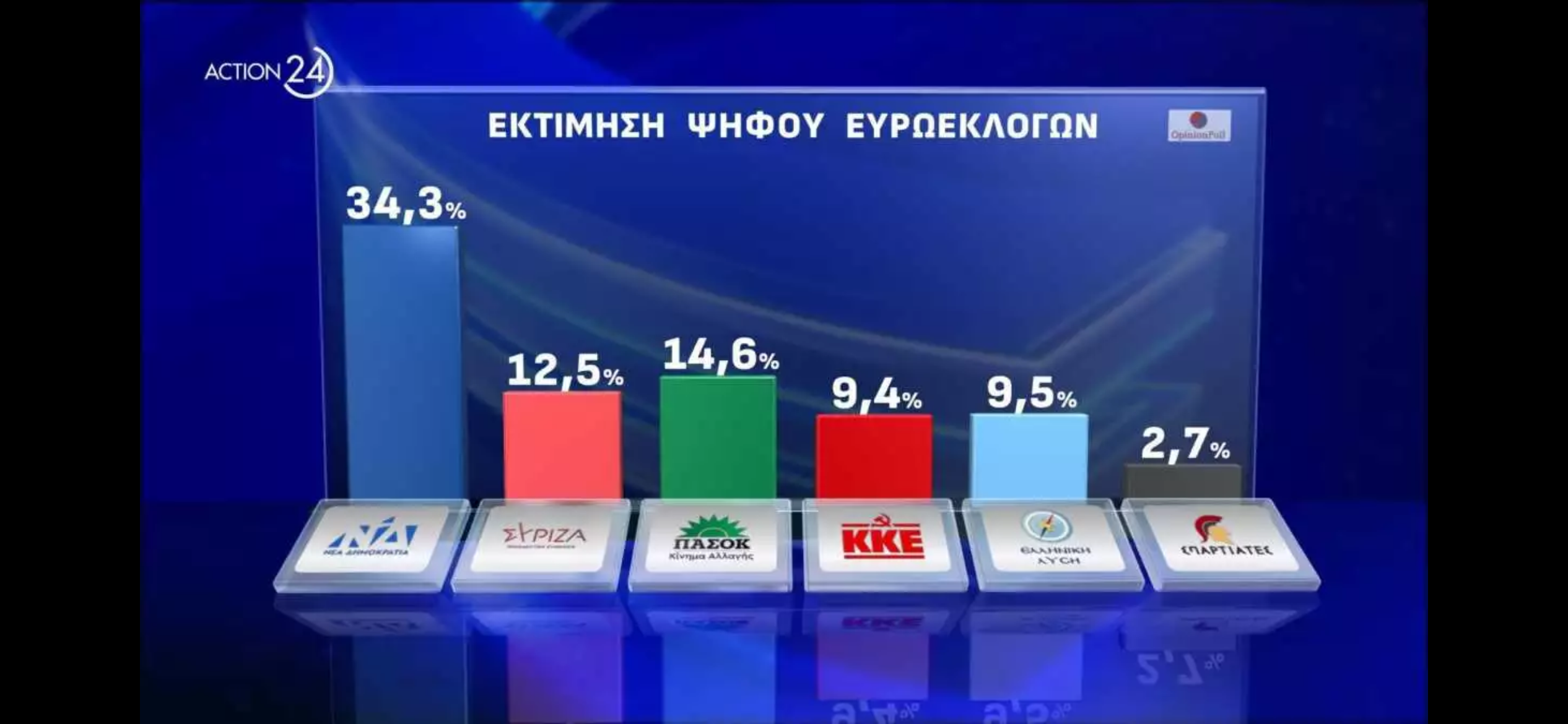 Δημοσκόπηση Opinion Poll: Κοντά στο διψήφιο ΚΚΕ και Ελληνική Λύση στις Ευρωεκλογές – Ανοίγει η διαφορά ΠΑΣΟΚ και ΣΥΡΙΖΑ