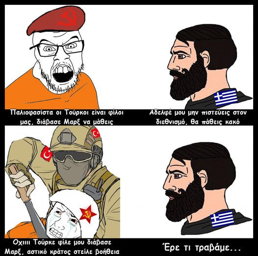 Αυτή είναι η χειρότερη χρήση του meme που έχω δει.Η όλη φάση με τη σύλληψη Ελληνόφωνων αλληλέγγυων με το σφυροδρέπανο στη Τουρκία είναι γελοία.