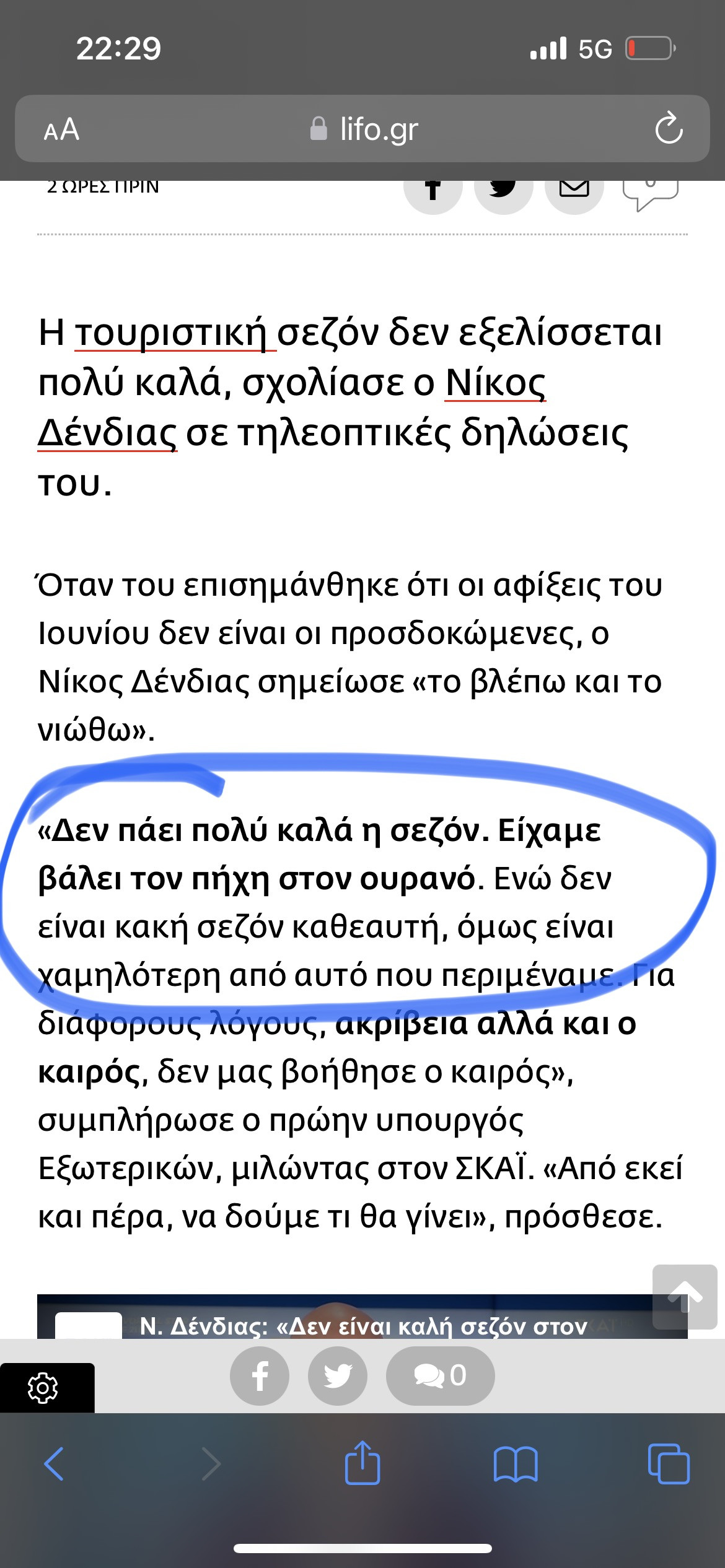εγω εδειξα οτι ο τουρισμος δεν παει οσο καλα θα περιμεναμε μεσω αρθρων, δεν μιλησα ο ιδιος ουτε για μειωση ουτε για το τι κανει σε σχεση με περυσι