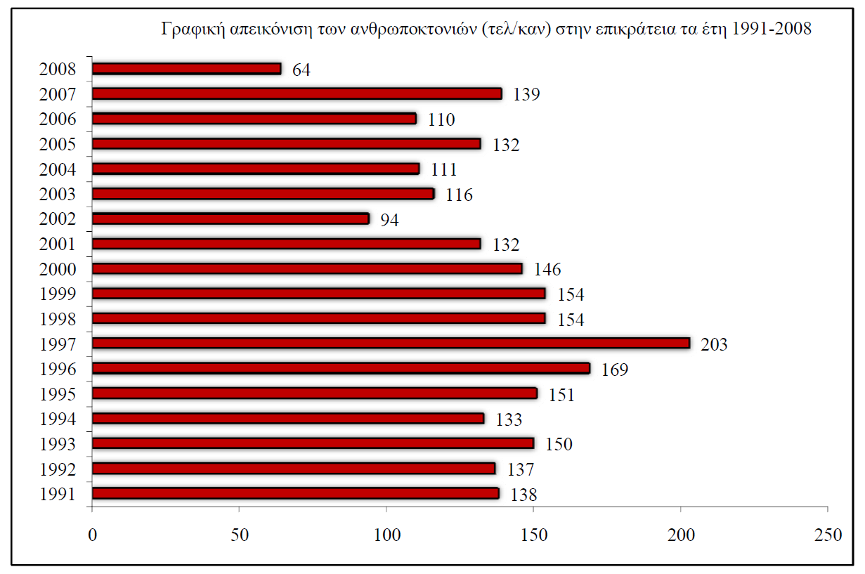 Δεν θέλω να σου αποδείξω κάτι, ούτε να διαβάλω απλά μίλησες εσύ για εγκληματικότητα και μου πόσταρες links για ανθρωποκτονίες μόνο. Τα κοίταξα στα γρήγορα φυσικά (έχουμε και ζωή) και προσπάθησα να τα διασταυρώσω με επίσημα στοιχεία της αστυνομίας (εκεί θα έπρεπε να πας κι εσύ απ' την αρχή) και αυτό που δείχνει από το 91 και μετά είναι αυξομειώσεις. Είχες γράψει ότι απ' το 91 μέχρι το 98 μειώνονταν. Αυτό δεν ισχύει. Το ότι μειώθηκαν κάπως οι δείκτες (200 σε μια οκταετία, αστεία πράγματα) και μετά από το 2009 και μετά έχουν έρθει πάλι στα ίδια ή και περισσότερα δεν δείχνει τίποτα.Λολ τραγικος. Κλασικη σοφιστια/υπεκφυγη, απο ΟΛΟ το ποστ μου, αγνόησες τα παντα, διαλεξες ενα κομματι που θεωρεις οτι μπορεις να διαβαλεις με καποιο τροπο για να αισθανθεις οτι ετσι ΟΛΑ οσα ειπα ειναι λαθος.
