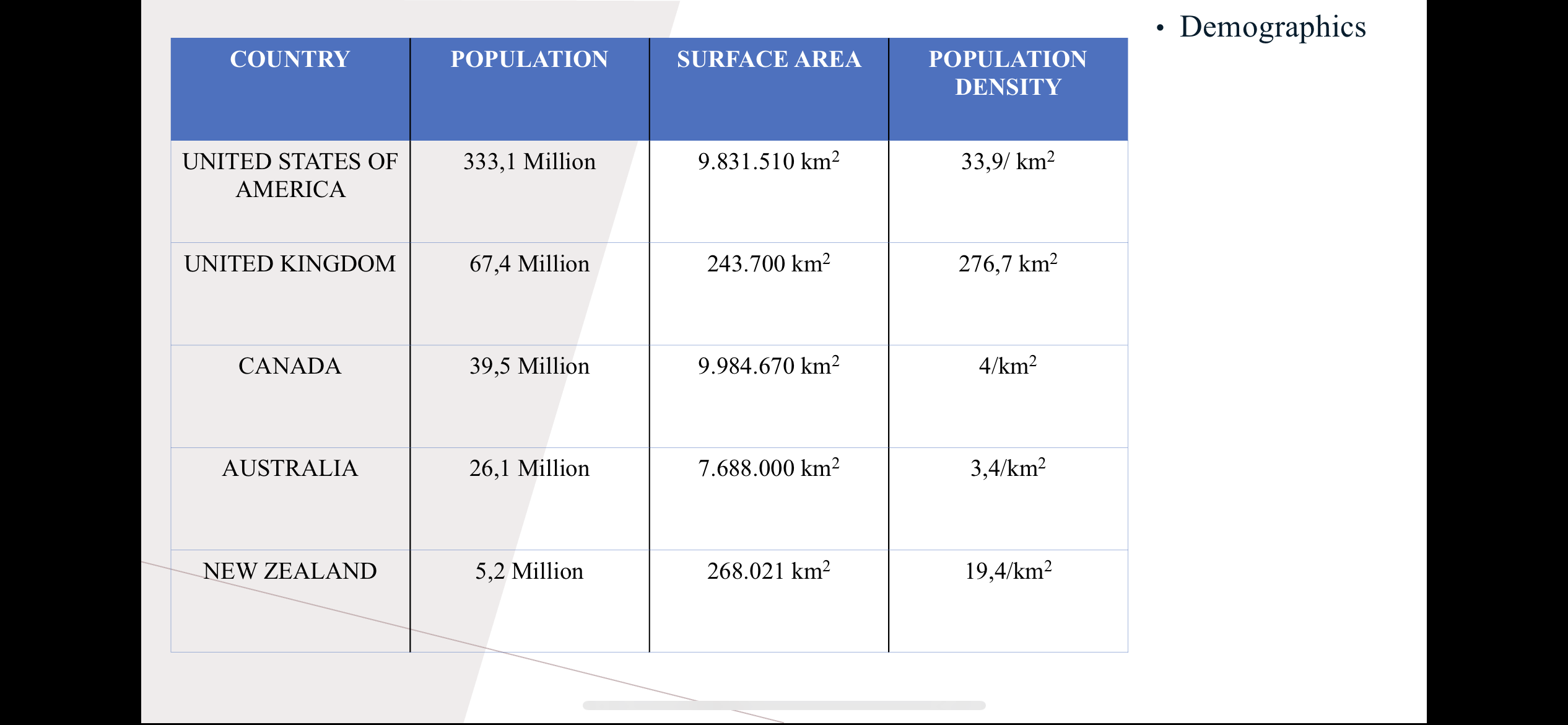 Μπράβο Φώτη ωραία παρουσίαση με ενδιαφέροντα στοιχεία!Είχα ανοίξει παλιότερα ένα thread στο οποίο σύγκρινα τις αγγλόφωνες χώρες και σας ρωτούσα ποια προτιμάτε. Έκατσα και έκανα ένα project στο οποίο συγκρίνω τις 5 βασικές αγγλόφωνες χώρες βάση διαφόρων δεικτών, παραθέτω τους πιο βασικούς καθώς συνολικά η εργασία που έκανα είναι 47 slides και δεν χωράει όλη εδώ.