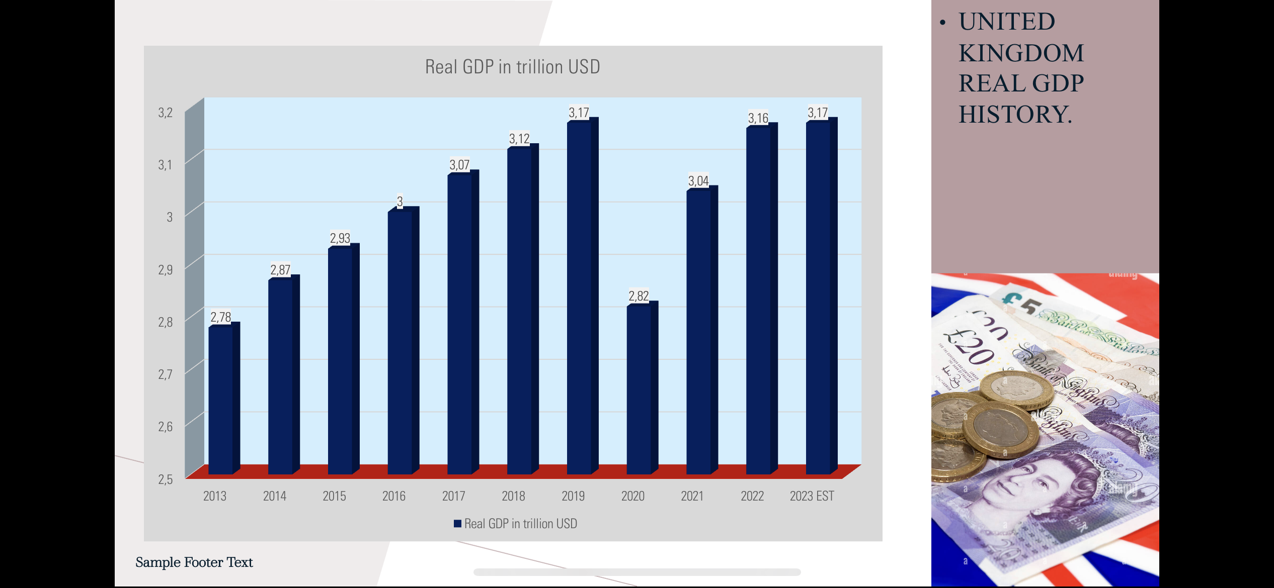 •Βρετανία: Η δεύτερη μεγαλύτερη οικονομία της Ευρώπης η οποία έβγαλε τα μάτια της με το Brexit. Αυτό είναι εμφανές από την απότομη ανακοπή των υψηλών ρυθμών αναπτυξης τα τελευταία χρόνια, η εκτίναξη του πληθωρισμού αλλά και η έλλειψη εξειδικευμένων εργατών που προκαλεί προβλήματα στην παραγωγή. Στα θετικά όμως έχουμε το γεγονός ότι παραμένει το δεύτερο μεγαλύτερο χρηματοοικονομικό κέντρο του πλανήτη, πρόσφερε άπειρες εύκαιρες για εργασία, οι μισθοί αυξάνονται με τον μεγαλύτερο ρυθμό από όλα τα κράτη της Ευρώπης ενώ οι τιμές ακινήτων αν και αρκετά ακριβές αρχίζουν να πέφτουν. Η Στερλίνα ανέκαμψε κάπως τους τελευταίους μήνες λόγω μέτρων που πήρε η κυβέρνηση, χωρίς να έχει φτάσει στο επίπεδο που ήταν παλιότερα. Θα βάλω γράφημα ώστε να δούμε την πορεία του βρετανικού νομίσματος.