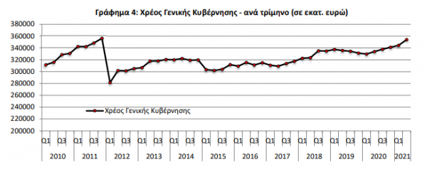 Το χρέος της Γενικής Κυβέρνησης εκτιμάται ότι θα διαμορφωθεί στα 350 δισ. ευρώ ή 197,1% ως ποσοστό του ΑΕΠ στο τέλος του 2021, έναντι 341,086 δισ. ευρώ ή 206,3% ως ποσοστό του ΑΕΠ το 2020 #CNNgrMoneywww.cnn.gr