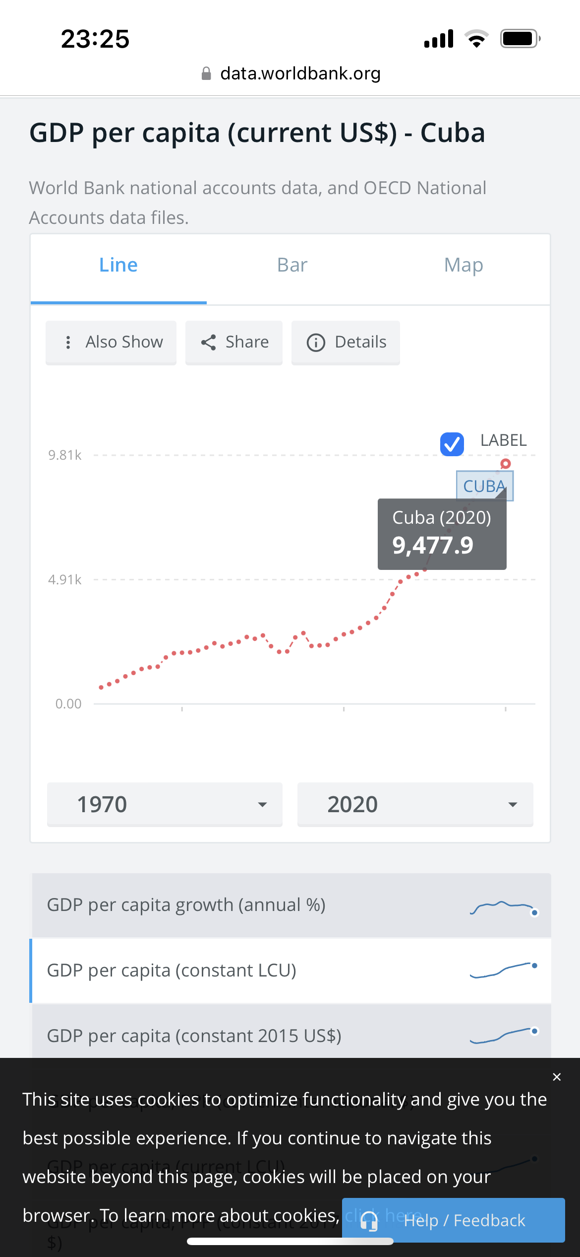 Οι μισθοί στην Κούβα δεν είναι το διάγραμμα που έβαλα πάνω, εκείνο ήταν το κατά κεφαλην ΑΕΠ. Στην Ελλάδα το μέσο ετήσιο εισόδημα είναι 16.700$ ενώ στην Κούβα 4.800$ το χρόνο. Πάντα το κατά κεφαλην ΑΕΠ είναι αρκετά πιο πάνω από το μέσο εισόδημα καθώς για να βρεις το κατά κεφαλην ΑΕΠ απλά διαιρείς το συνολικό ΑΕΠ με τον πληθυσμό της χώρας, μέσα στο ΑΕΠ όμως έχεις τα κέρδη των επιχειρήσεων , τις κρατικές δαπάνες , επενδύσεις κτλ που υπερεκτιμούν το κατά κεφαλην ΑΕΠ. Στην Ελλάδα το κατά κεφαλην ΑΕΠ είναι 20.700$ το χρόνο όμως το μέσο εισόδημα 16.700$. Αυτό γίνεται σε όλες τις χώρες και στις ΗΠΑ το μέσο ΑΕΠ είναι 67.000$ όμως το μέσο ετήσιο εισόδημα ενός Αμερικάνου είναι τα 59.000$.