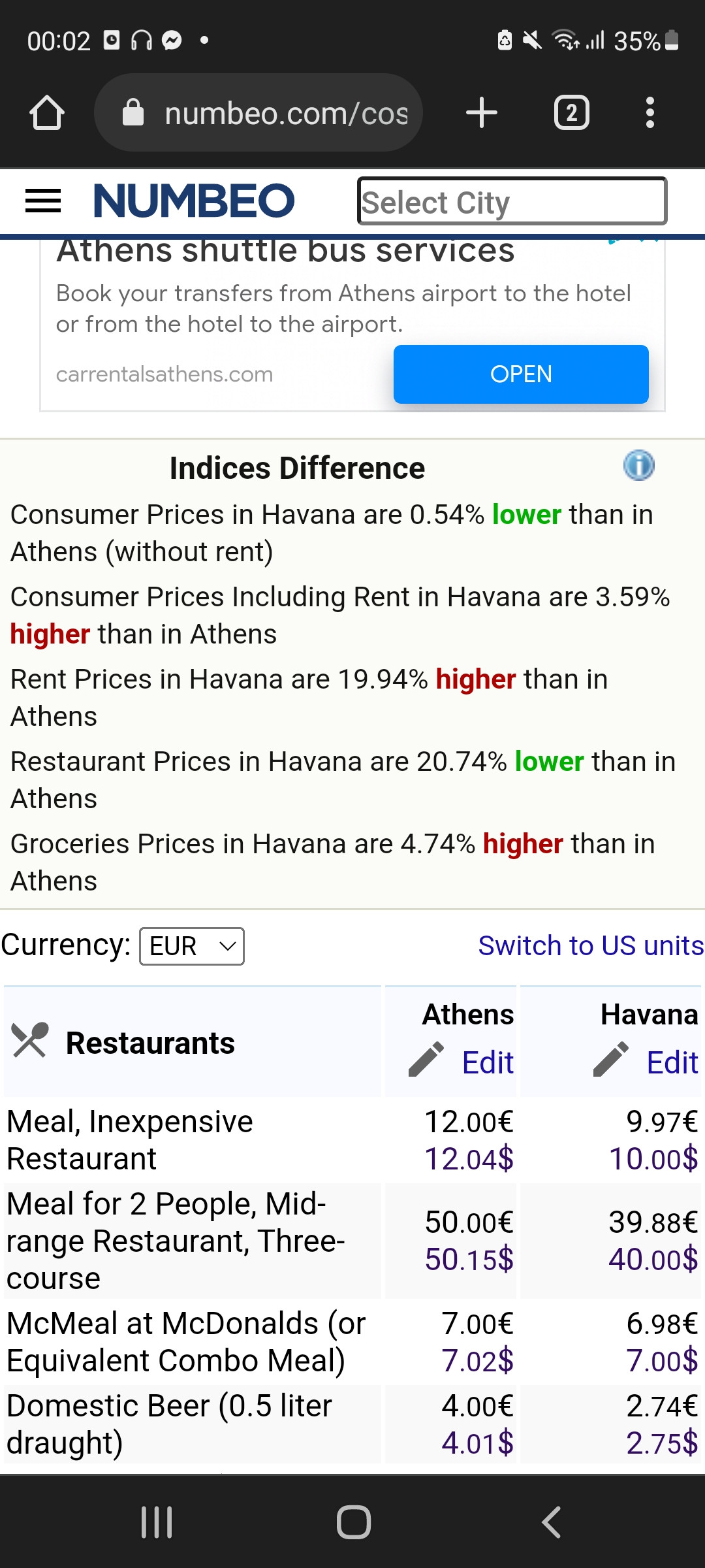 Ας κάνουμε την απλούστευση ότι οι υπηρεσίες έχουν τις ίδιες τιμές (πιο ακριβά στην Κούβα στην πραγματικότητα) και ότι ο μέσος μισθός της Κούβας είναι ο μισός από της Ελλάδας (περισσότερο από μισός στην πραγματικότητα).