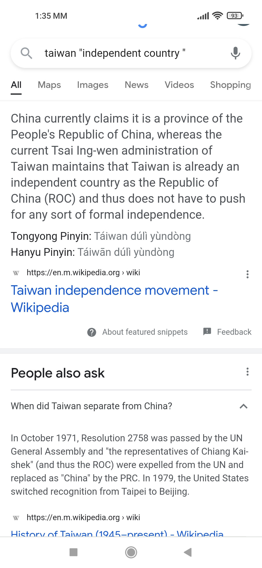 δειξε μου αυτη την ιστορια που το υποστηριζει..Η ιστορία λέει ότι η Ταιβαν είναι ανεξάρτητο κράτος εδώ και πολλά χρόνια.