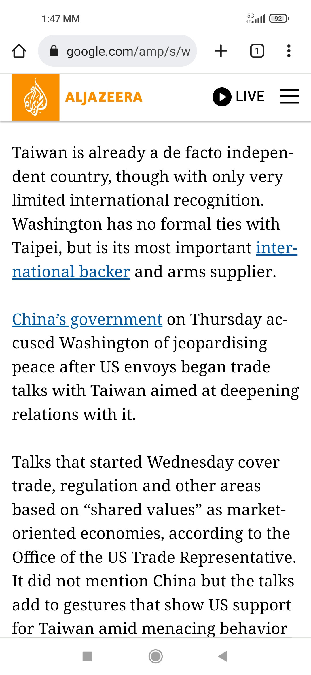 Να σε ρωτήσω κάτι Γιαννίκο, η Ταιβαν αρα ανήκει στην Κίνα σωστά;; Υποστηρίζεις κινεζική εισβολή στην Ταιβαν ναι η όχι;;Διαβάζετε αυτά που στέλνετε; Ξεκάθαρα ο ΟΗΕ και οι Ηνωμένες Πολιτείες αναγνωρίζουν τη Λαϊκή Δημοκρατία της Κίνας ως τη μόνη Κίνα. Μέχρι και οι δυτικοί τους πούλησαν τους Ταϊβανέζους ( ανέκαθεν το έκαναν άλλως τε).