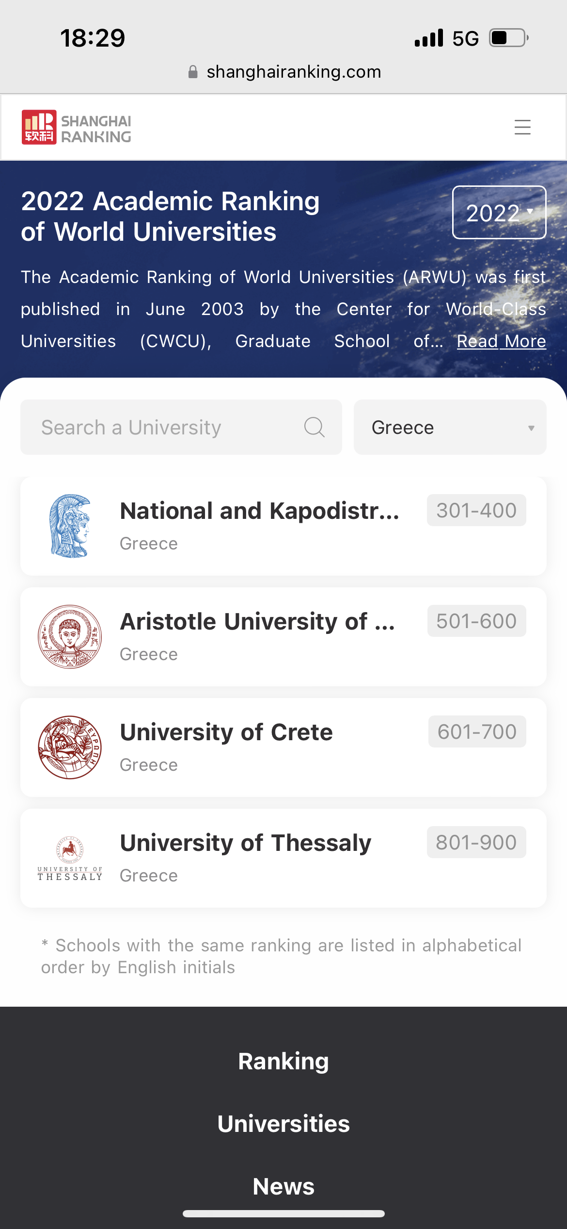Λες 450η θέση το ΕΚΠΑ, εγώ στη σελίδα του ΕΚΠΑ βρίσκω αυτό:Όταν λες έχεις πληροφορίες ότι τα ελληνικά πανεπιστήμια ανεβαίνουν τι εννοείς;; Εγώ που παρακολουθώ χρόνια τις λίστες των πανεπιστήμων (ΠΧ Shanghai list ) δεν βλέπω καμία άνοδο των ελληνικών πανεπιστημίων.