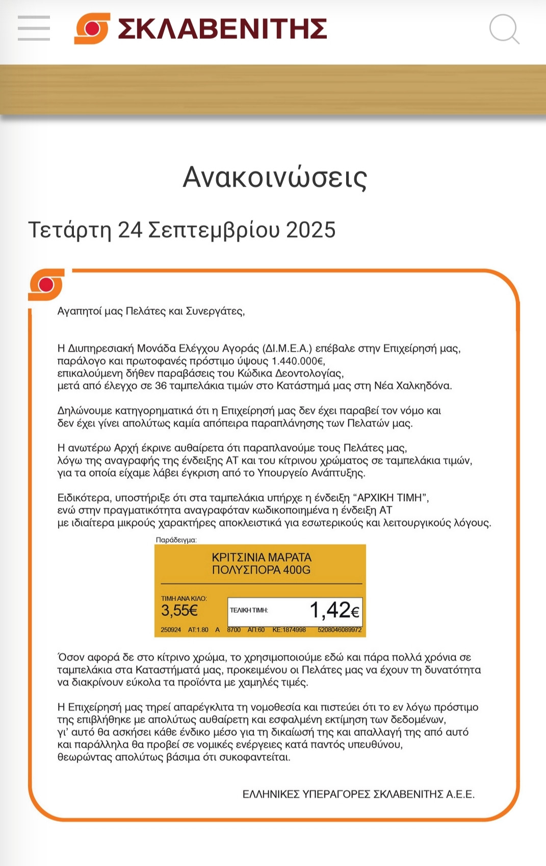Τι είναι για ένα πανελλαδικό δίκτυο super market, ίσως και το μεγαλύτερο όλων, το 1.5 εκατομμύριο πρόστιμο;