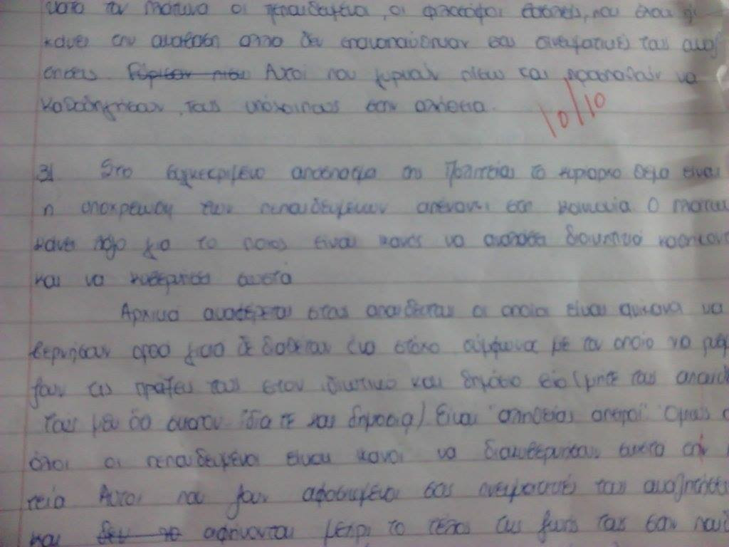 Μία άλλη καθηγήτριά μου σε ένα διαγώνισμα είπε ότι αισθανόταν πως τα γράμματα θα βγουν από το γραπτό να την κατασπαράξουν! Πολύ περίεργο.