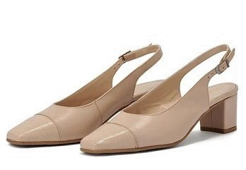 Μια καλή, κατά τη γνώμη μου πάντα, ιδέα είναι να βάλεις μια γόβα slingback, δηλαδή κλειστό στο μπροστινό μέρος και ανοιχτό στη φτέρνα. Με τακούνι χαμηλό και λεπτό, τα λεγόμενα kitten heels ή και φλατ (ανάλογα το υπόλοιπο σύνολό σου).