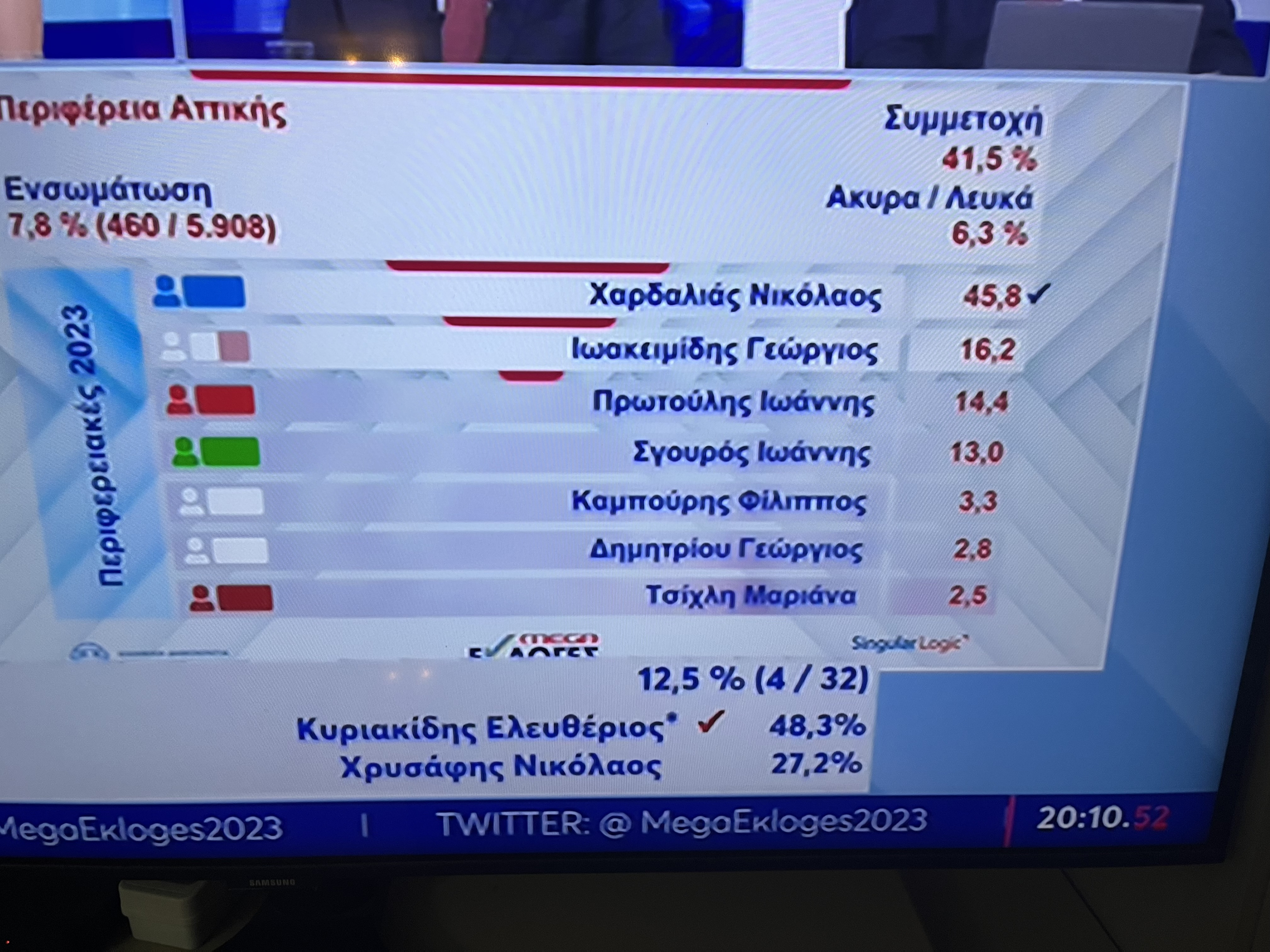 Αττική, στο 46% έφτασε ο Χαρδαλιάς.