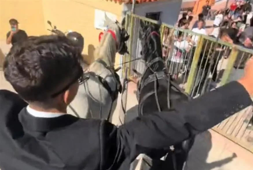 Ο νεαρός από το 2ο Λύκειο Βούλας εμφανίστηκε στο σχολείο σε άμαξα με δύο άλογα, φορώντας μάλιστα κουστούμι και γραβάτα!