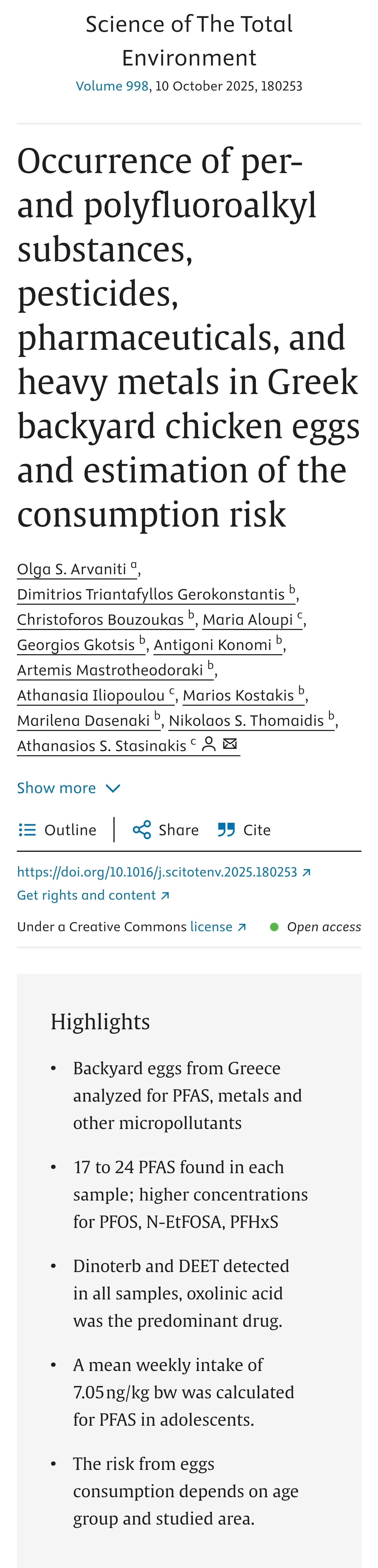 Καλα ο,τι τρως, φορας,αναπνεεις κακο για τον οργανισμο σου ειναι πλεον, απλα φαε το αυγο και μη το πολυψαχνεις το θεμα.Ωχ αμαν, PFAS στα σπιτικά αυγουλακια κηπου;