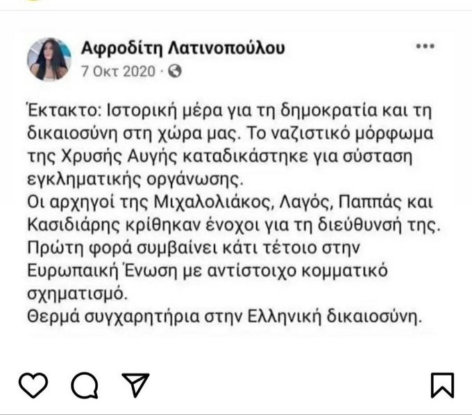 Το Εθνικό Μέτωπο είναι το μόνο πραγματικά εθνικιστικό κόμμα που κατεβαίνει σε αυτές τις εκλογές και με παρουσία στο δρόμο, εκδηλώσεις κ.λπ. Όλοι οι διακόσιοι άλλοι δεξιά της ΝΔ (και η Λατινοπούλου) ανήκουν στον ευρύτερο χώρο της συντηρητικής δεξιάς. Δεν είναι εθνικιστές. Και μιλάμε για ένα άτομο που το 2020 στην καθεστωτική καταδίκη της Χρυσής Αυγής πανηγύριζε στα social για την ελληνική δικαιοσύνη. Τόσο αντισυστημική και επαναστάτρια είναι.Εδώ ο κύριος κράζει τη Λατινοπούλου (γκομενάρα, by the way) συνεχώς γιατί φοβάται μην τον αποκαλέσουν ομοφοβικό ή ότι κάνει fat shaming, εξαιτίας των κατά καιρούς δηλώσεων της Λατινοπούλου. Όταν κι ο ίδιος επηρεάζεσαι τόσο από το σύγχρονο αφήγημα, δεν μπορείς να ζητάς καμία επανάσταση.