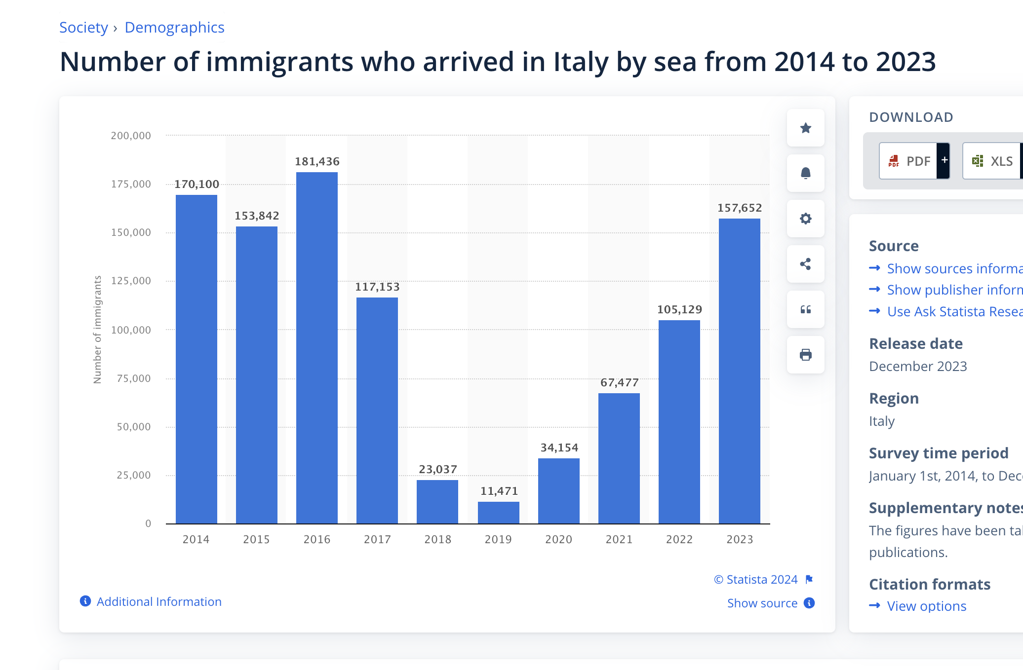 From January to December 2024, around 66,000 migrants arrived in Italy by sea.www.statista.com