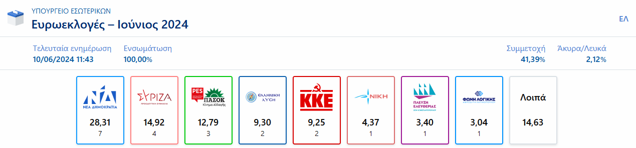 Γενικότερα, ο συντηρητικός χώρος στην Ελλάδα, παρουσίασε μεγάλη αύξηση σε σχέση με τις ευρωεκλογές του 2019. Επίσης, κάτι άλλο αξιοπρόσεκτο είναι πως από τις μεγάλες απώλειες της ΝΔ, δεν επωφελήθηκαν καθόλου ουσιαστικά ΣΥΡΙΖΑ και ΠΑΣΟΚ, παρόλο που είναι παραδοσιακά κόμματα εξουσίας, αλλά η Λύση, η Νίκη και η Φωνή Λογικής και κυρίως η αποχή.Καλά για εμένα από άποψη χώρων έγιναν όλοι τριμπούρδελο. Εκτίναξη η συντηρητική δεξιά του Βελόπουλου στο 9,3% περίπου. Άνοδος της εξ ίσου συντηρητικής δεξιάς της Νίκης στο 4,4%. Για αλλαγή που έδωσαν μια ακόμα έδρα; Στην επίσης συντηρητική δεξιά της Λατινοπούλου. Ο Κασιδιάρης ποιους αποφάσισε να στηρίξει; Τους συντηρητικούς δεξιούς Πατριώτες με δικό του υποψήφιο.