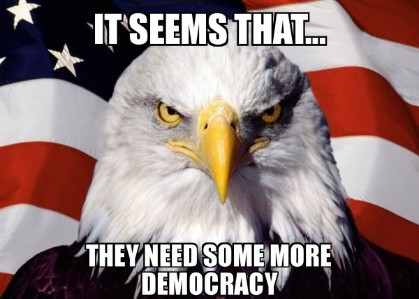 Αυτό ακριβώς είναι και το επιχείρημα πολλών φιλελεύθερων, που ουσιαστικά νομιμοποιούν στρατιωτικές επεμβάσεις των ΗΠΑ σε χώρες της Ανατολής, αλλά και της Λατινικής Αμερικής. Ότι δηλαδή, οι επεμβάσεις αυτές έχουν ως σκοπό την εγκαθίδρυση αστικών δημοκρατιών στα κράτη αυτά, και λειτουργεί το γεγονός αυτό σα μεσσιανικός σκοπός πολλών φιλελεύθερων.
