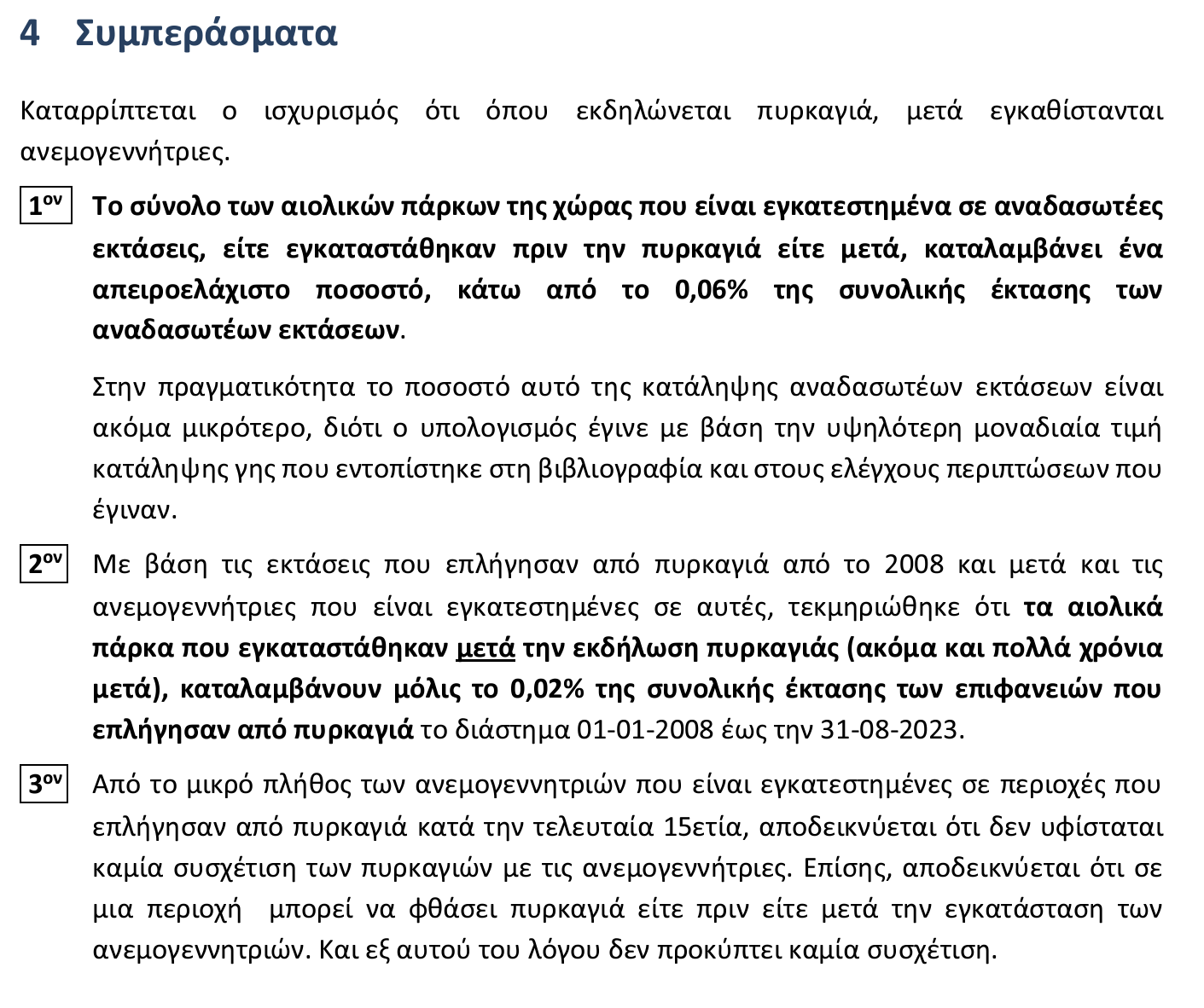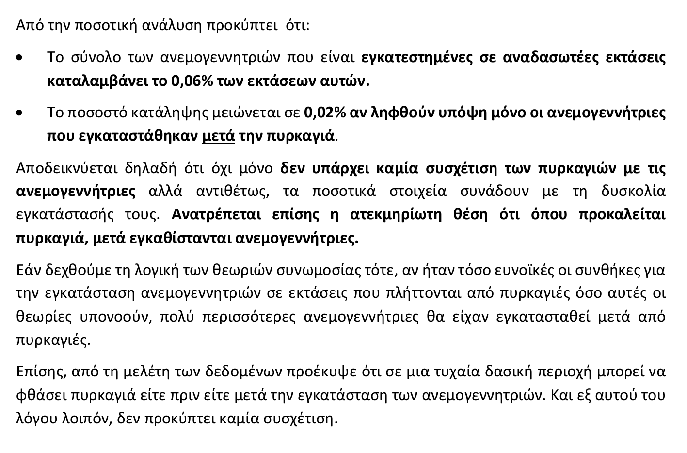 Μελέτη της ΕΛΕΤΑΕΝ καταρρίπτει τα fake news ότι οι ανεμογεννήτριες συνδέονται με τις δασικές πυρκαγιές