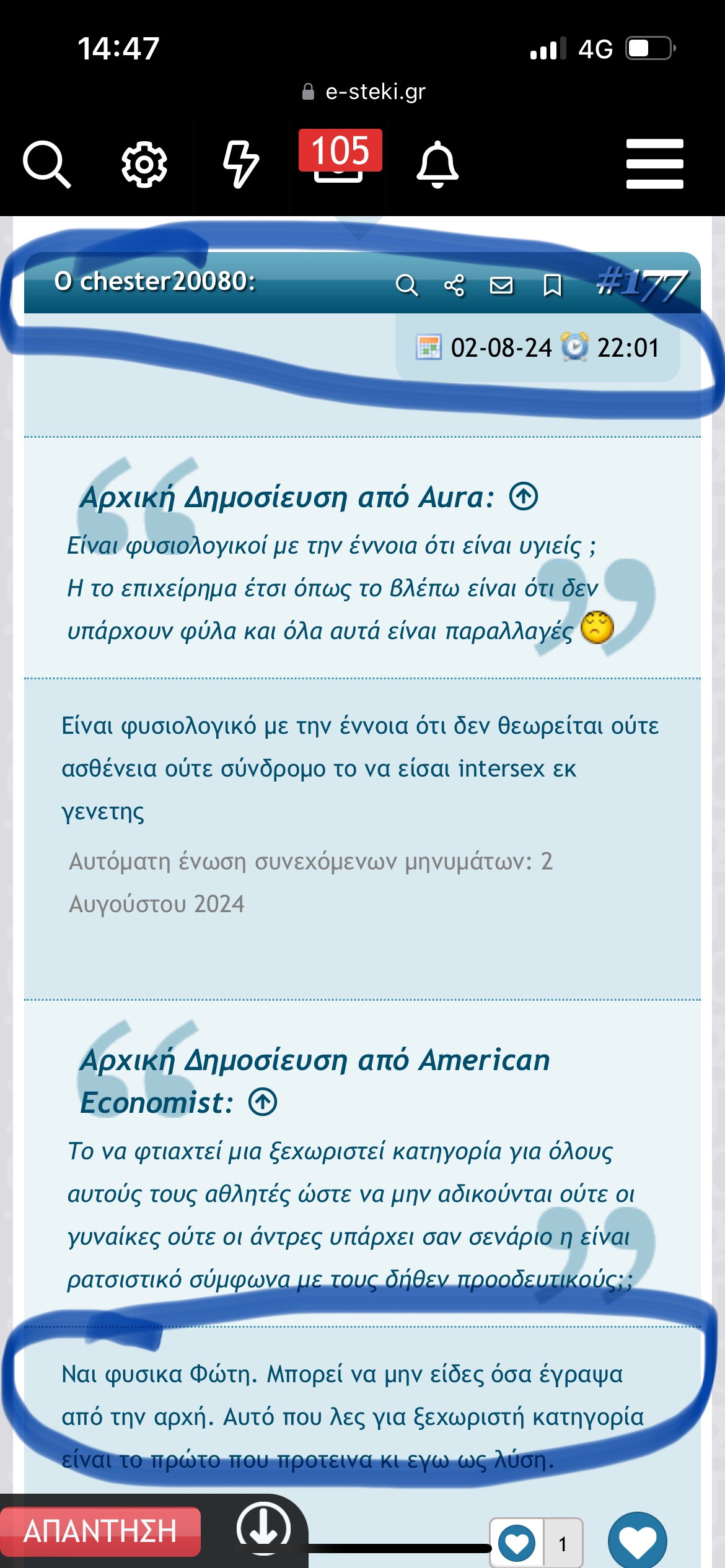 Περιττο να πω πως για την Imane δεν ξερουμε καθολου σε τι επιπεδα βρισκεται η τεστοστερονη της. Ειναι ολα εικασιες. Οπως και ουτε ξερουμε αν εχει καν AIS, ειτε PAIS ειτε CAIS.