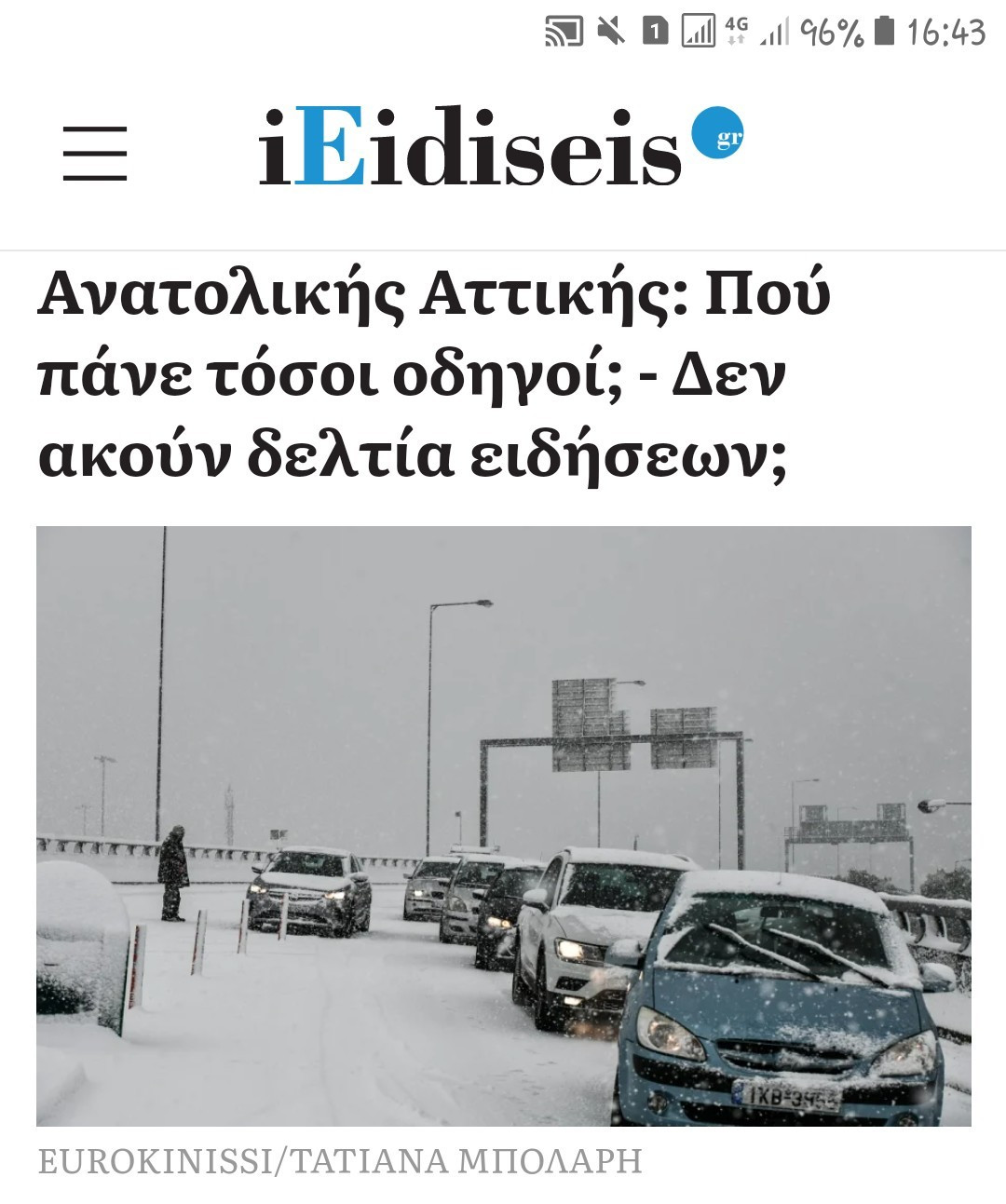 Γνωρίζουμε για την κακοκαιρία που επρόκειτο να έρθει εδώ και 5 μέρες. Η κυβέρνηση διατυμπάνιζε πως είναι προετοιμασμένη. Για ποιο λόγο να μην τα θέλουμε όλα λαμπίκο; Ζητάμε πολλά;Είχαν διπλώσει νταλίκες στη μέση και δεν μπορούσαν να περάσουν τα εκχιονιστικα.