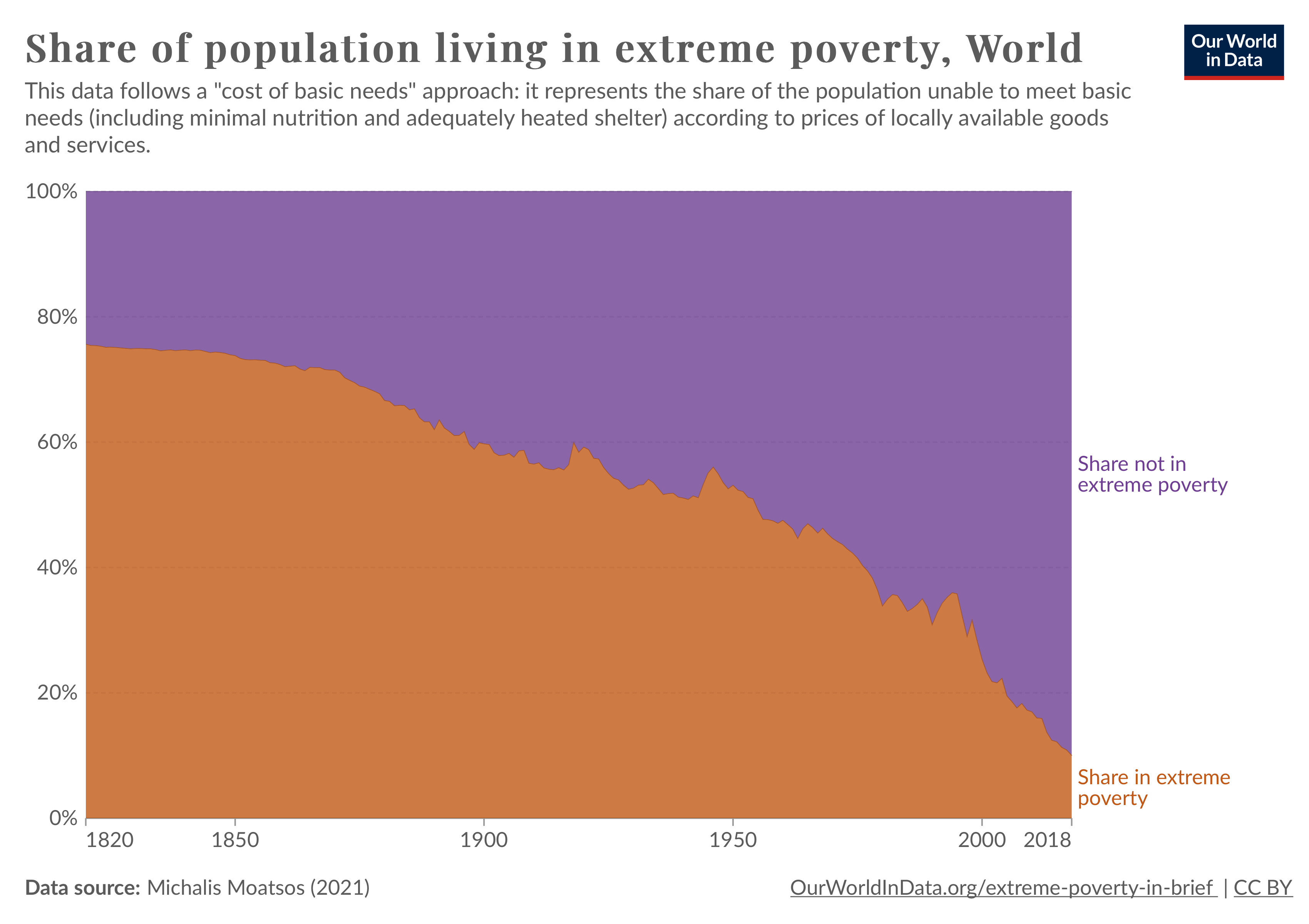 Μπορώ να βάλω άπειρα στοιχεία που δείχνουν το ποσό βελτιώθηκε η ζωή μας μετά την κυριαρχία του Καπιταλισμού, άρα το να βγαίνουν μερικοί άκυροι και να λένε ότι ο Καπιταλισμός δεν πρόσφερε τίποτα και κυριάρχησε μόνο και μόνο λόγω της προπαγάνδας δείχνει ότι δεν έχουν καμία επαφή με την πραγματικότητα παρά ακούν τυφλά την προπαγάνδα του ΚΚΕ. Ναι ο Καπιταλισμός δεν είναι τέλειος και ναι υπάρχει ακόμα ένα 11% του πλανήτη που ζει σε συνθήκες ακραίας φτώχειας όμως back to reality κανένα σύστημα δεν είναι τέλειο και κανένα σύστημα δεν θα επιφέρει πλούτο στο 100% του πλανήτη, τουλάχιστον ο Καπιταλισμός κατάφερε να βγάλει από την φτώχεια και την εξαθλίωση την πλειοψηφία του πλανήτη μέσα σε λιγότερο από 200 χρόνια ενώ κατάφερε να αυξήσει το προσδόκιμο ζωής κατά 30 χρόνια [67%] λόγω των κινήτρων που έδωσε για την ανάπτυξη της Ιατρικής και της τεχνολογίας.