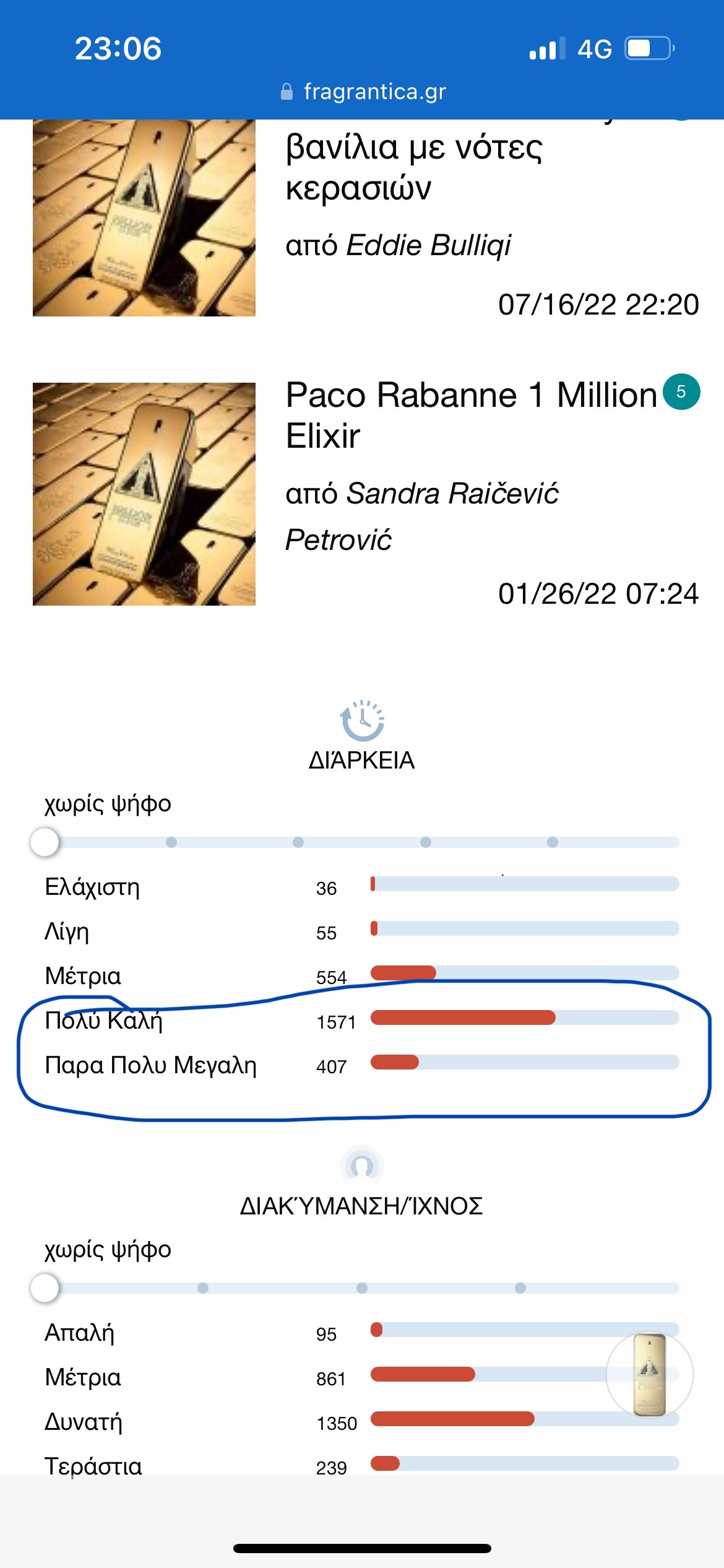 Σωστό αυτό που λες. Αλλά ναι γενικά όλη η σειρά 1 Million παίζει να έχει από τις καλύτερες διάρκειες εκεί έξω, ειδικά το elixir που έχει μεγαλύτερη περιεκτικότητα σε άρωμα από το απλό EDT αλλά και από το EDP. Οποίος ασχολείται με αρώματα (όπως εμείς) ξέρει καλά ότι δεν θα απογοητευτεί ποτέ από την 1 Million σε θέμα διαρκείας, εδώ σε εμένα κρατάει χαλαρά όλη την ημέρα.