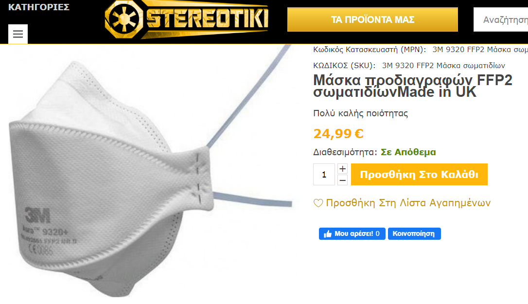 Μόνο 25€ μια μάσκα που κανονικά κάνει 3€.