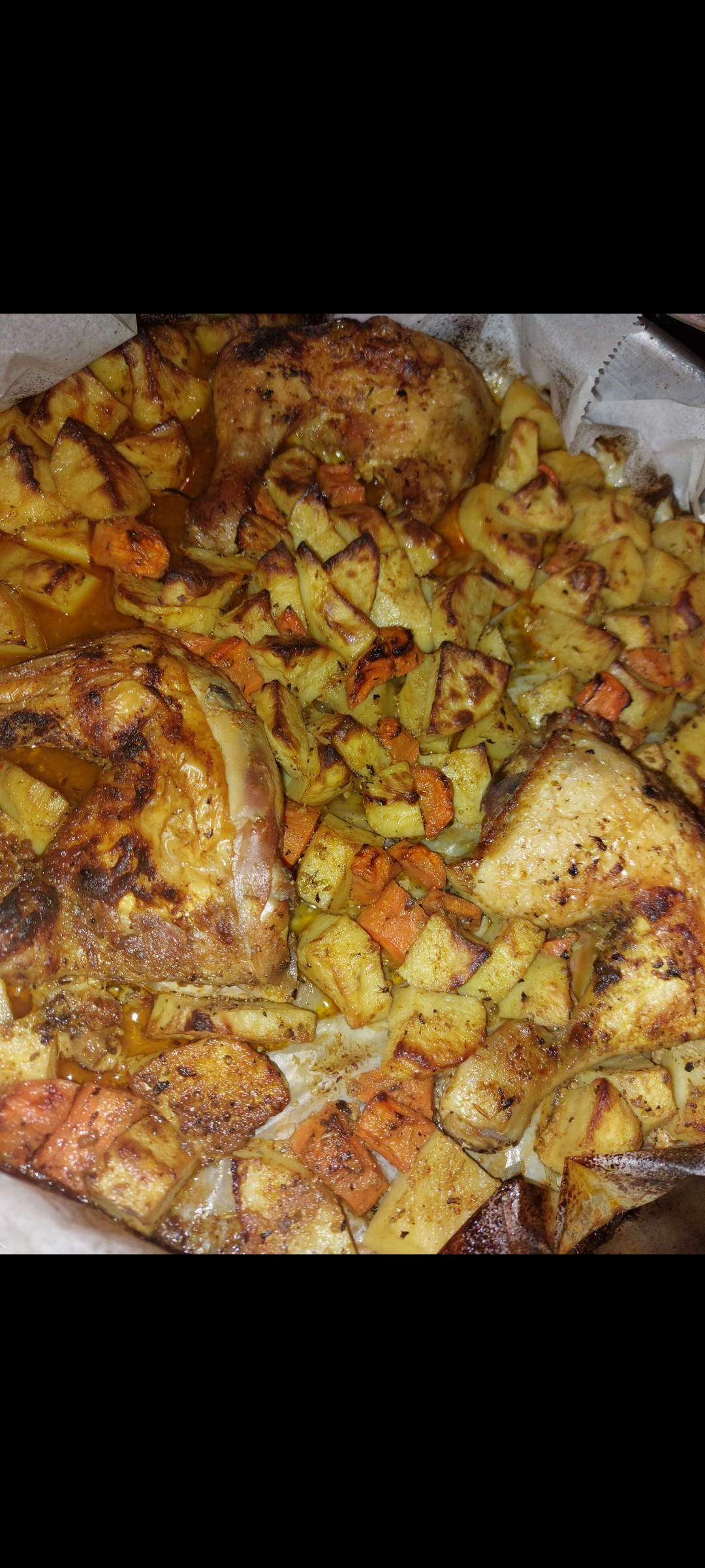 Κοτόπουλο με πατάτες στο φούρνο, εμάς μας αρεσει να βάζουμε και λίγο καροτακι