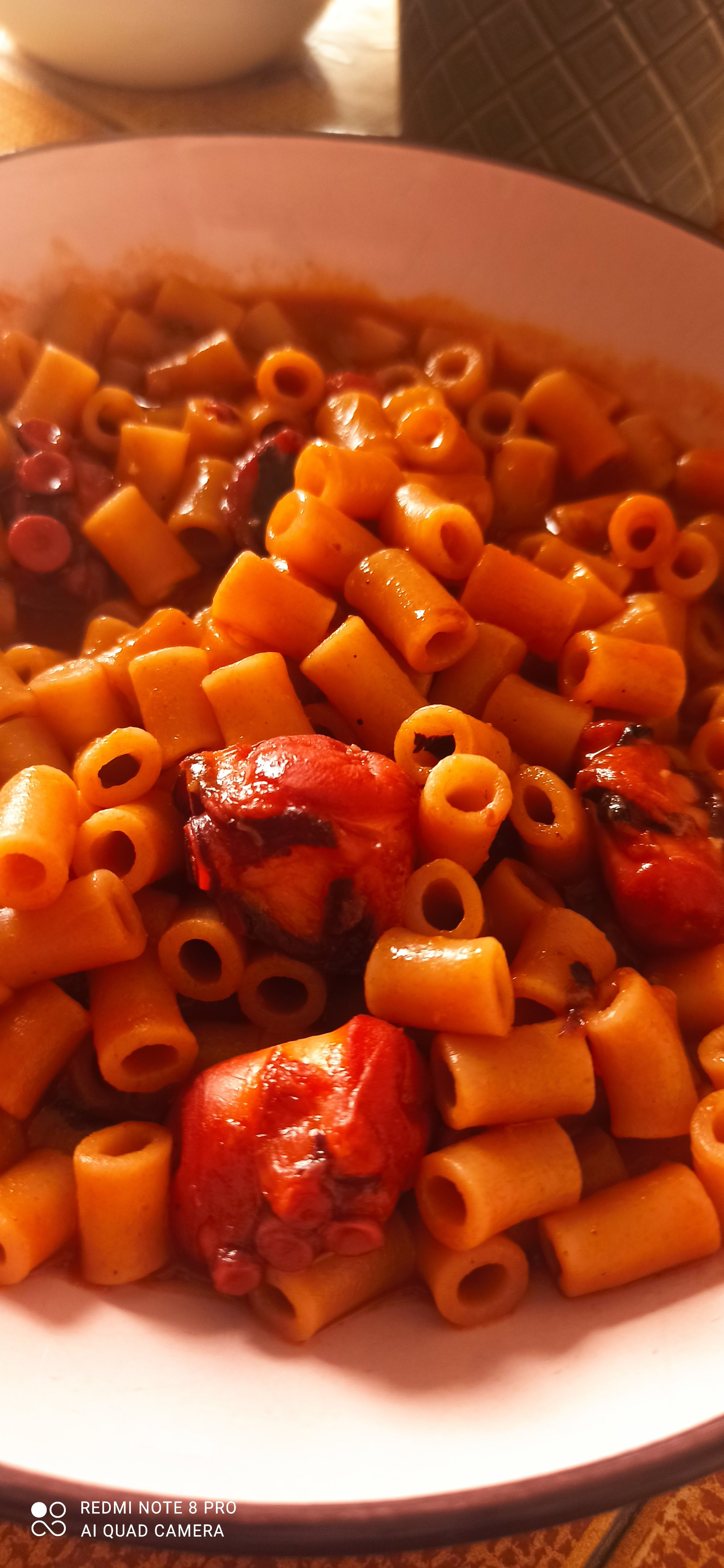 Πω πω ευγε..ωραιο πραμα...μακαρονακι βρασμενο μεσα στο ζουμι του χταποδιου...εχει παρει ολη την γευση μεσα στην εσωτερικη σωληνα.