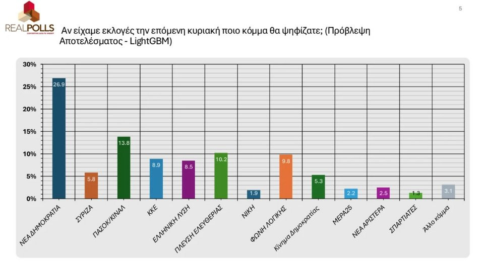 Έκπληξη προκαλούν τα ποσοστά της Φωνής Λογικής και της Πλεύσης Ελευθερίας, καθώς αγγίζουν το 10% για πρώτη φορά.