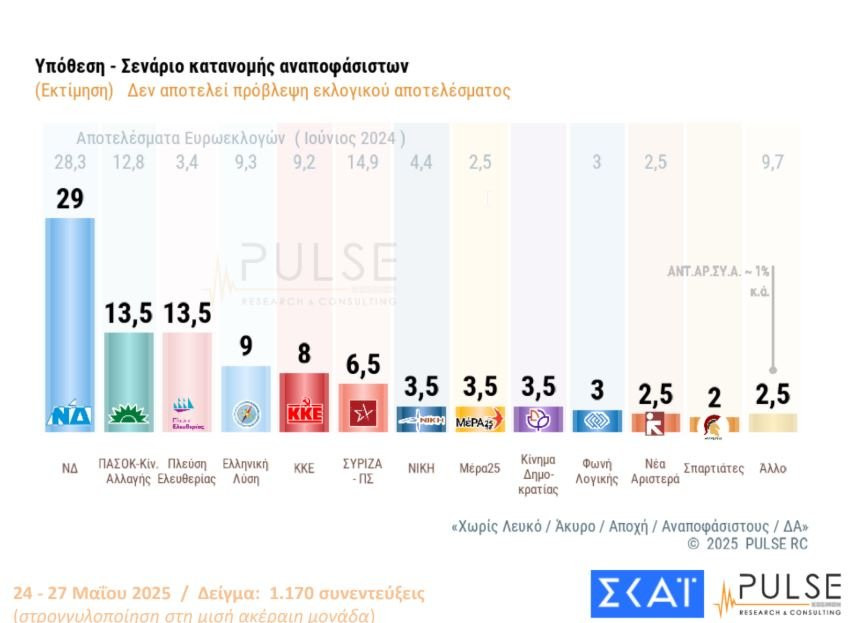 Πάντως μακάρι στις επόμενες εκλογές έτσι για το χαβαλέ να βγουν ποσοστά σαν αυτά στη δημοσκόπηση. Να δούμε ΝΔ να τάζει λαγούς σε ΠΑΣΟΚ ή Βέλο ή Νίκη μην τους πάρουν την κουτάλα τίποτα Ζωή με Κασσελακη και πάλι ΠΑΣΟΚ (θα είναι το μπαλαντέρ μεταξύ των δύο στρατοπέδων).