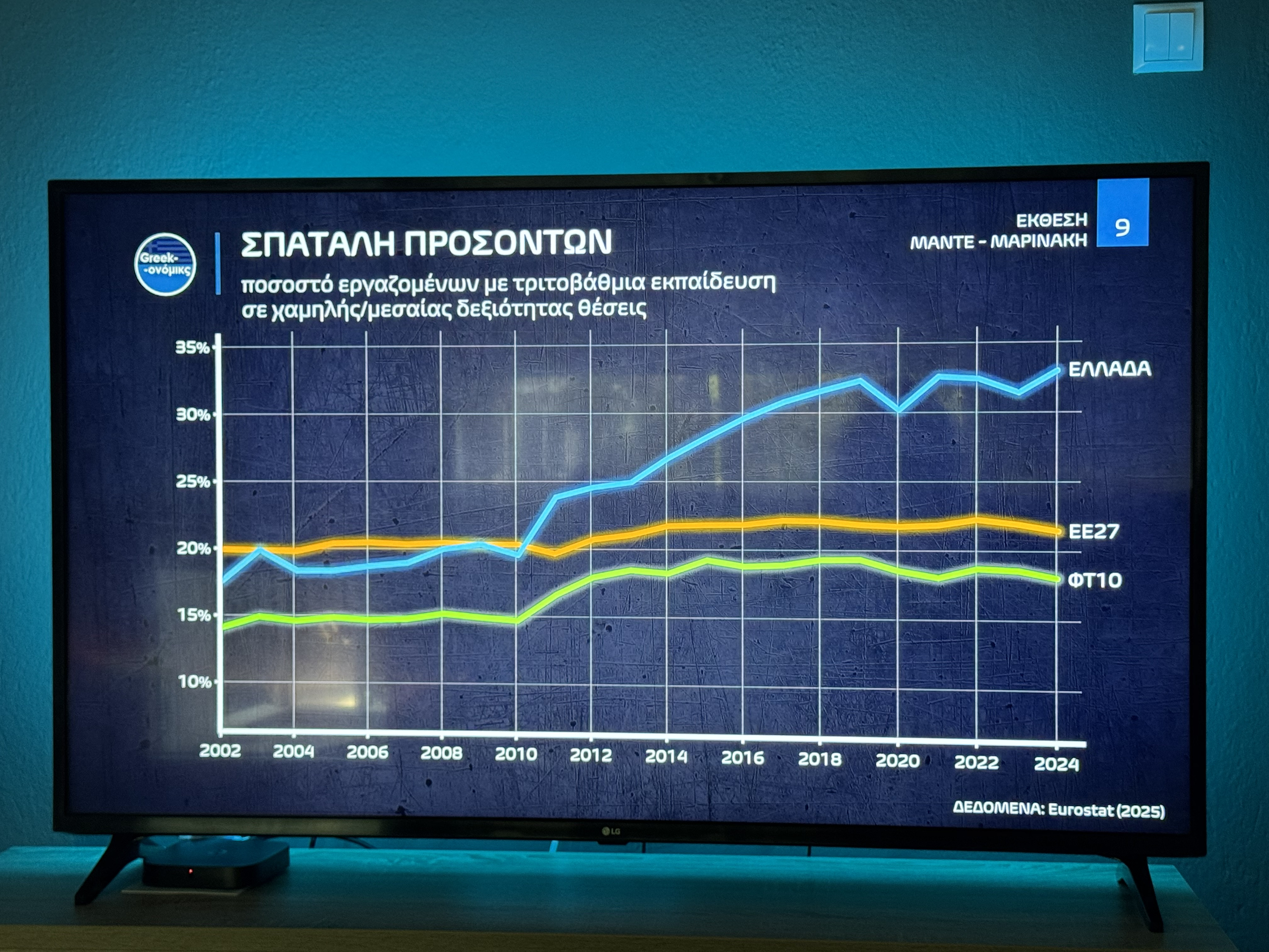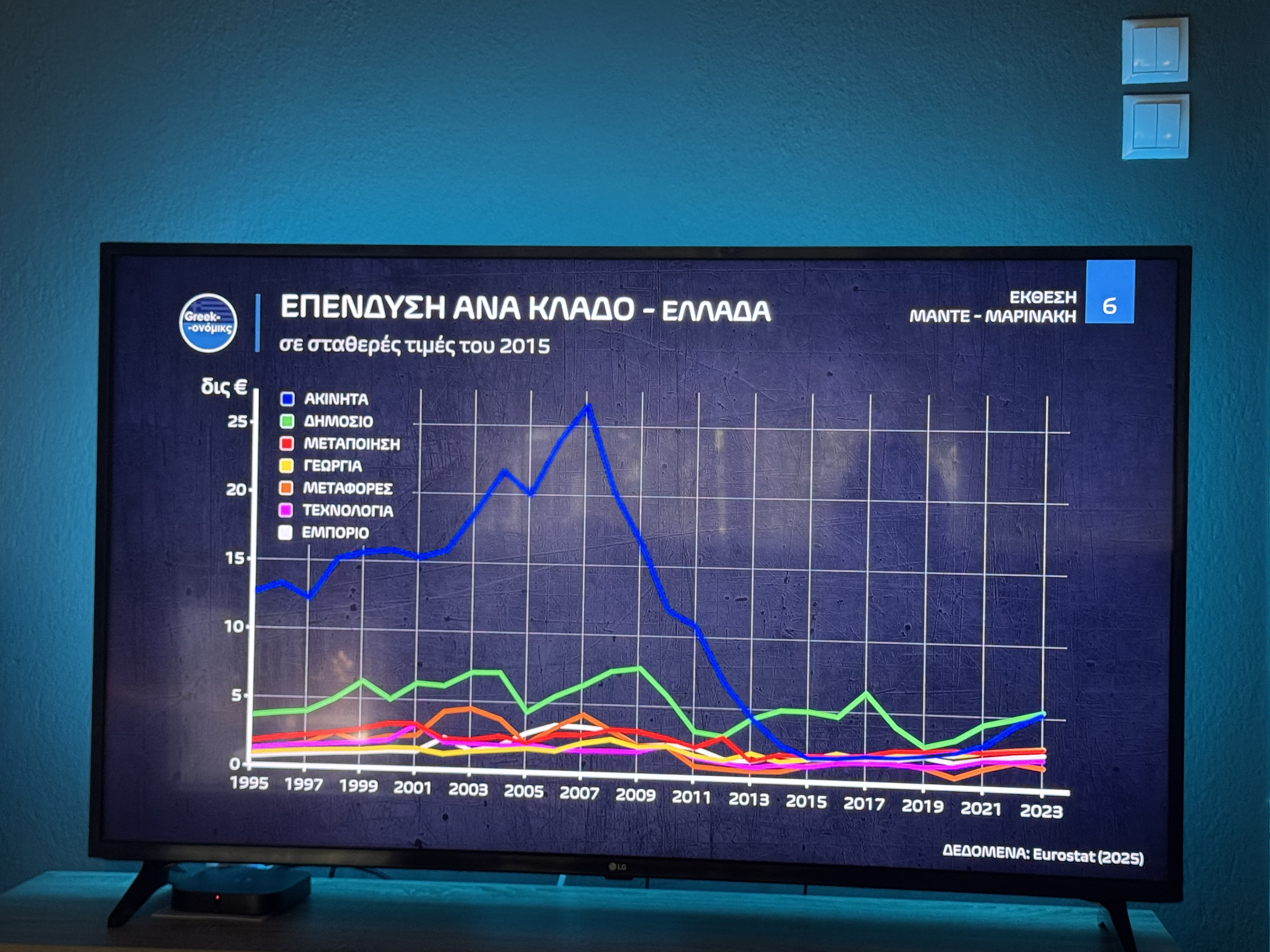 Τα περισσότερα ήταν ήδη γνωστά πχ χρέος και μέρος του ως πληθωρισμός ή υποαπασχόληση ή πάτος στη μεταποίηση κλπ. Απλά τα έβαλε σε γράφημα και είναι γροθια στο στομάχι.
