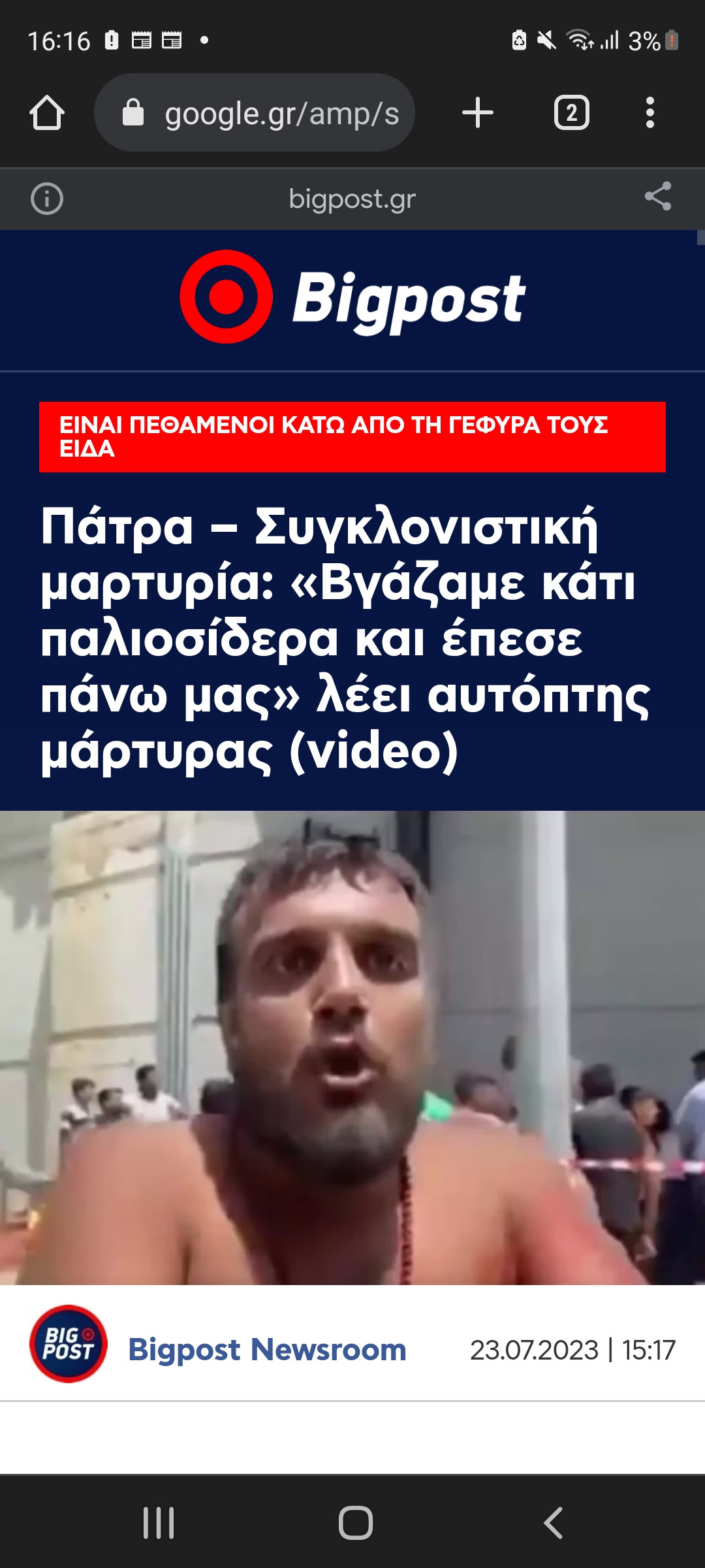 Μα δεν υπάρχει κάτι παραπάνω . Έχουν γίνει σχεδόν όλα . Πλημμύρες , σεισμοί , φωτιές , συγκρούσεις τρένων , κατάρρευση οδικών υποδομών . Τι άλλο έχει μείνει ; Πρέπει να ζούμε όλοι απο θαύμα ακόμα πιστεύω , δεν υπάρχει άλλη εξήγηση . Δεν ξέρεις πότε και απο που θα σου έρθει σε αυτή την χώρα .Τι άλλο πρέπει να γίνει, πραγματικά, τι δυστοπία είναι αυτή που ζούμε καθημερινά..
