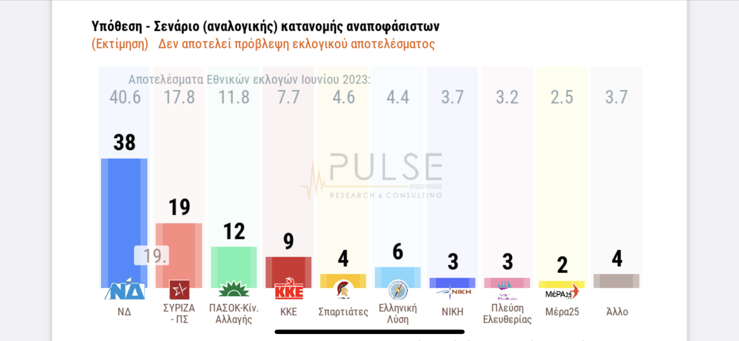 Τίποτα το μη αναμενόμενο θεωρώ. Εκ των δεξιών η Ελληνική Λύση σαρώνει. Μην σε πω πως πραγματικά φθάσαμε στο σημείο η Ελληνική Λύση να είναι η μόνη αξιόλογη αντιπολίτευση εκεί μέσα. Το βρίσκω απολύτως λογικό να φθάνει στο 6% (μην σε πω πως, αν θέλουμε να είμεθα δίκαιοι, αξίζουν και πολύ παραπάνω). Όπως εξ ίσου λογική βρίσκω την πτώση των Σπαρτιατών στο 3,6% (μην πω πως ο λαός παραείναι επιεικής μαζί τους) μετά τα τόσα ξεφτιλίκια με την διάσπαση. Το ΚΚΕ επίσης δεν με κάνει εντύπωση που έχει δυναμική, είναι η μόνη πραγματικά αριστερή φωνή στη Βουλή αυτή τη τετραετία. Επίσης καμμία εντύπωση για την στασιμότητα Πλεύσης Ελευθερίας και ΝΙΚΗς, δεν ακούγονται.Πάντως αυτό που είναι αξιοσημείωτο στην πρώτη δημοσκόπηση,είναι πως τόσο η ΝΔ κρατάει σταθερά τα ποσοστά της, όσο και σημαντική άνοδο σημειώνουν Ελληνική Λύση, Νίκη και ειδικά το ΚΚΕ, το οποίο μάλλον αποτελεί καταφύγιο και μονόδρομο πια για πολλούς παραδοσιακούς ψηφοφόρους του ΣΥΡΙΖΑ. Πλεύση/Σπαρτιάτες, αν και με μειωμένα ποσοστά, παραμένουν πάνω από 3%. ΣΥΡΙΖΑ/ΠΑΣΟΚ δείχνουν γενικά να έχουν κακή εικόνα δημοσκοπικά. Εξαφανισμένο φαίνεται και το ΜΕΡΑ25 μετεκλογικά και επιπλέον κανένα κόμμα εκτός Βουλής δε φαίνεται να σημειώνει κάποια δυναμική προς καταγραφή.