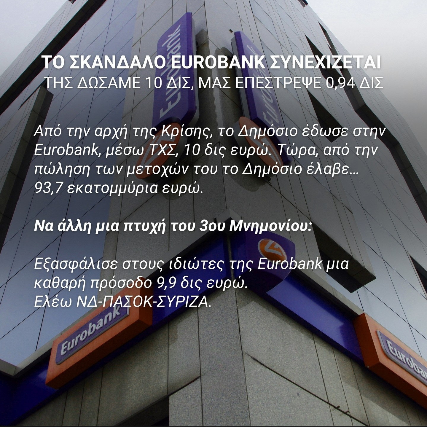 Γράψε τι θα γινόταν αν αφήναμε τις τράπεζες να καταρρεύσουν όμως. Να γράφεις όλη την ιστορία και οχι μόνο αυτή που μας συμφέρει.